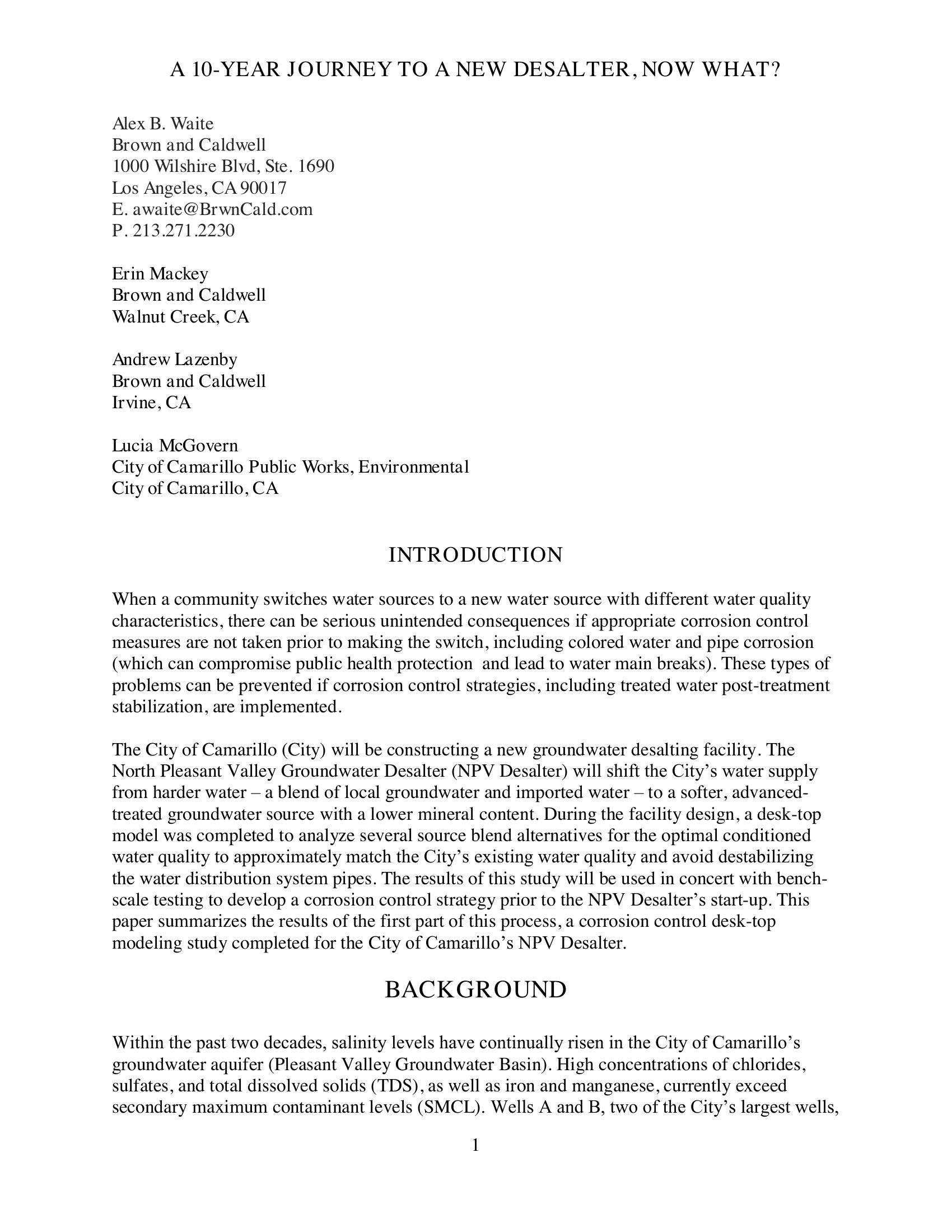 | Keywords | Groundwater, NPV Desalter, Potable |