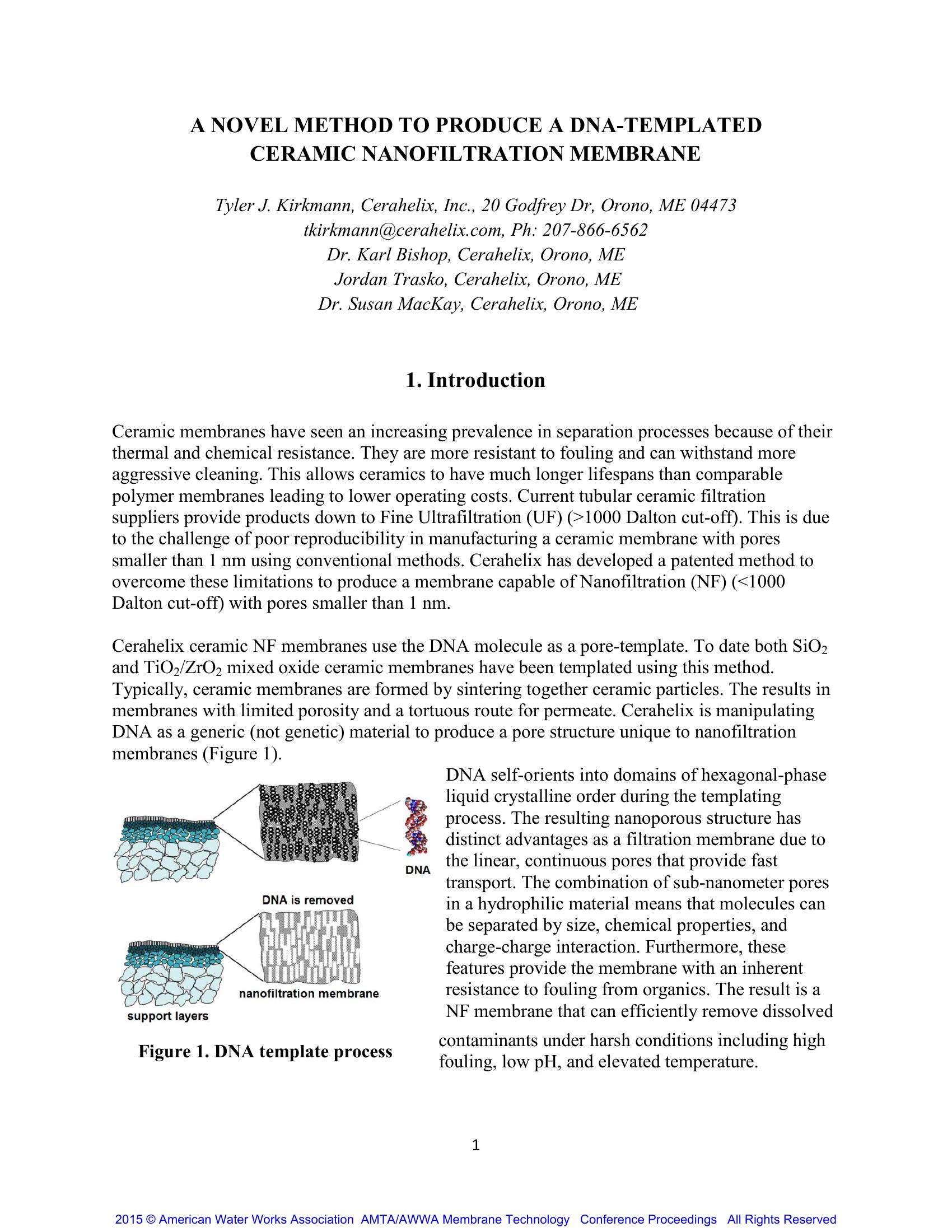 | Keywords | DNA-Templated, Ceramic, Nanofiltration |