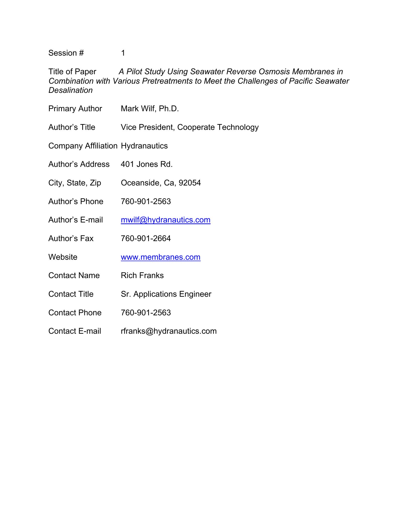 | Keywords | seawater desalination, pretreatment |