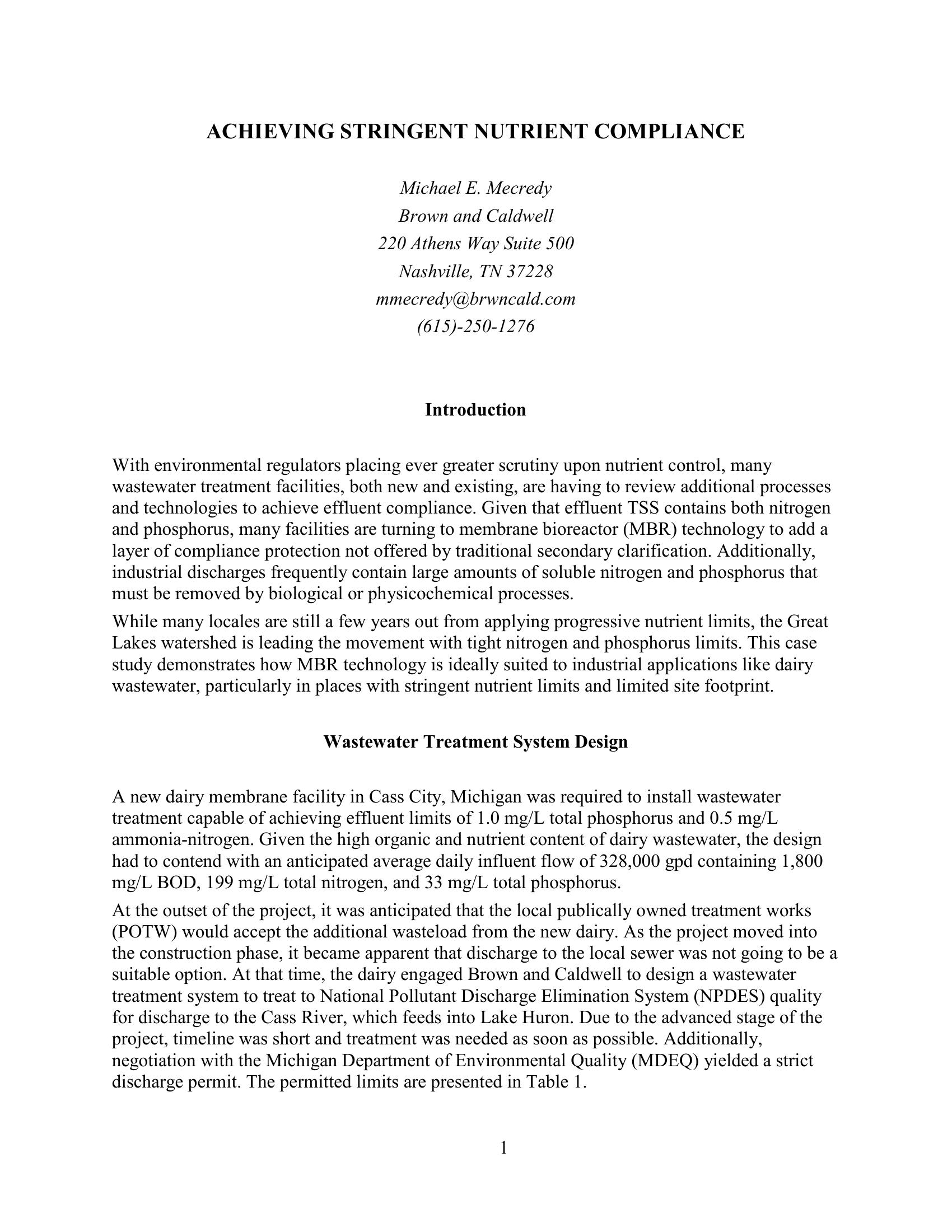 With environmental regulators placing ever greater scrutiny upon nutrient control, many wastewater treatment facilities, both new and existing, are having to review additional processes and technologies to achieve effluent compliance. Given that effluent TSS contains both nitrogen and phosphorus, many facilities are turning to MBR technology to add a layer of compliance protection not offered by a traditional secondary clarifier. While many locales are still a few years out from applying more progressive nutrient limits, the Great Lakes watershed is leading the movement with tight nitrogen and phosphorus limits. This case study demonstrates how MBR technology is ideally suited to industrial applications like dairy wastewater, particularly in places with stringent nutrient limits and limited site footprint.