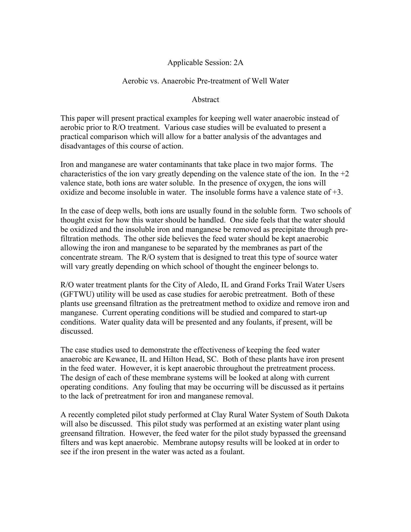 | Keywords | well water, pretreatment, aerobic v anaerobic |