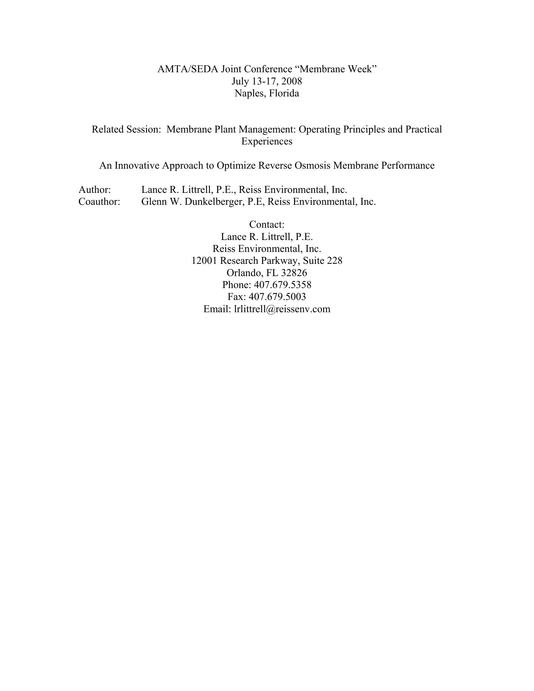 An Innovated Approach to Optimize Reverse Osmosis Membrane Performance