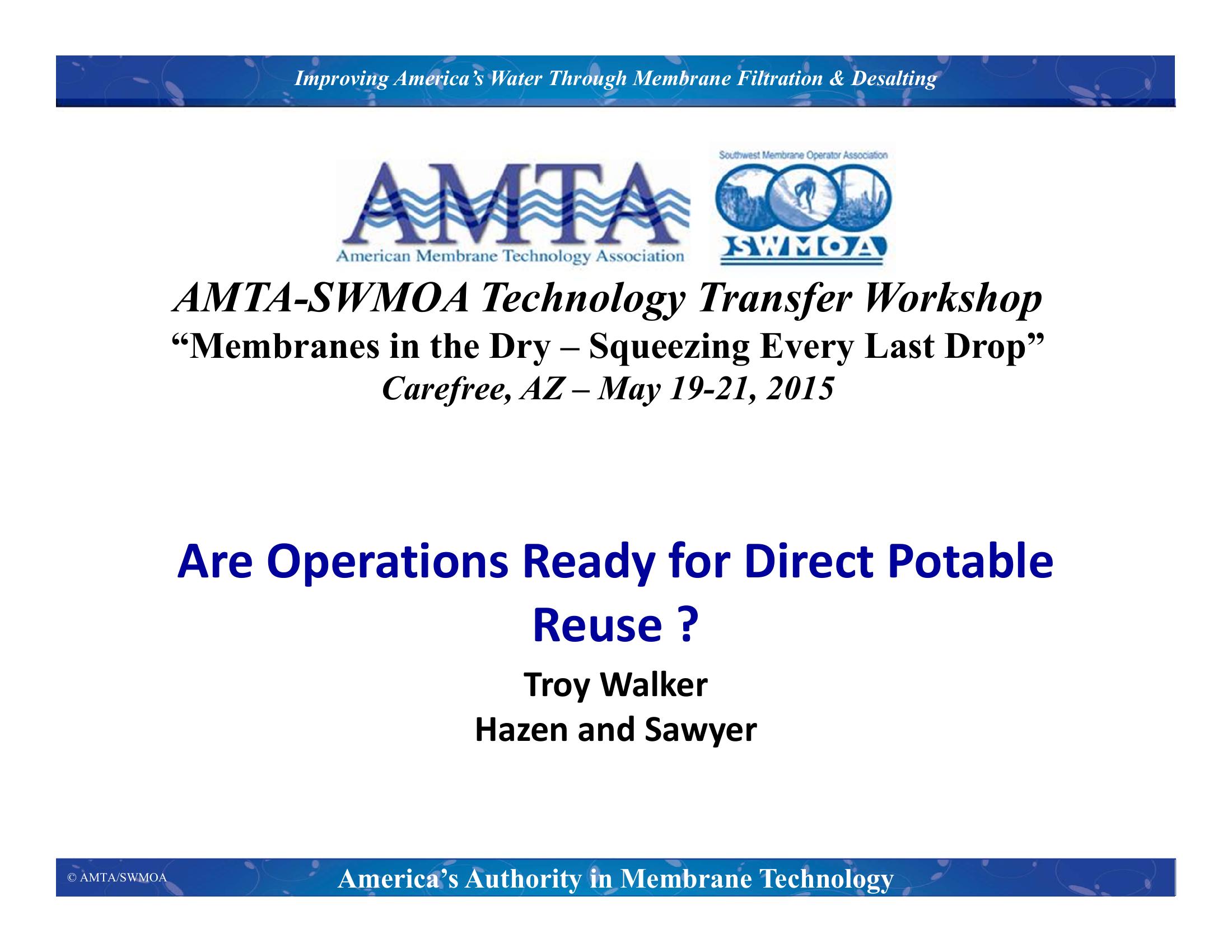 Are Operations Ready for Direct Potable Reuse?