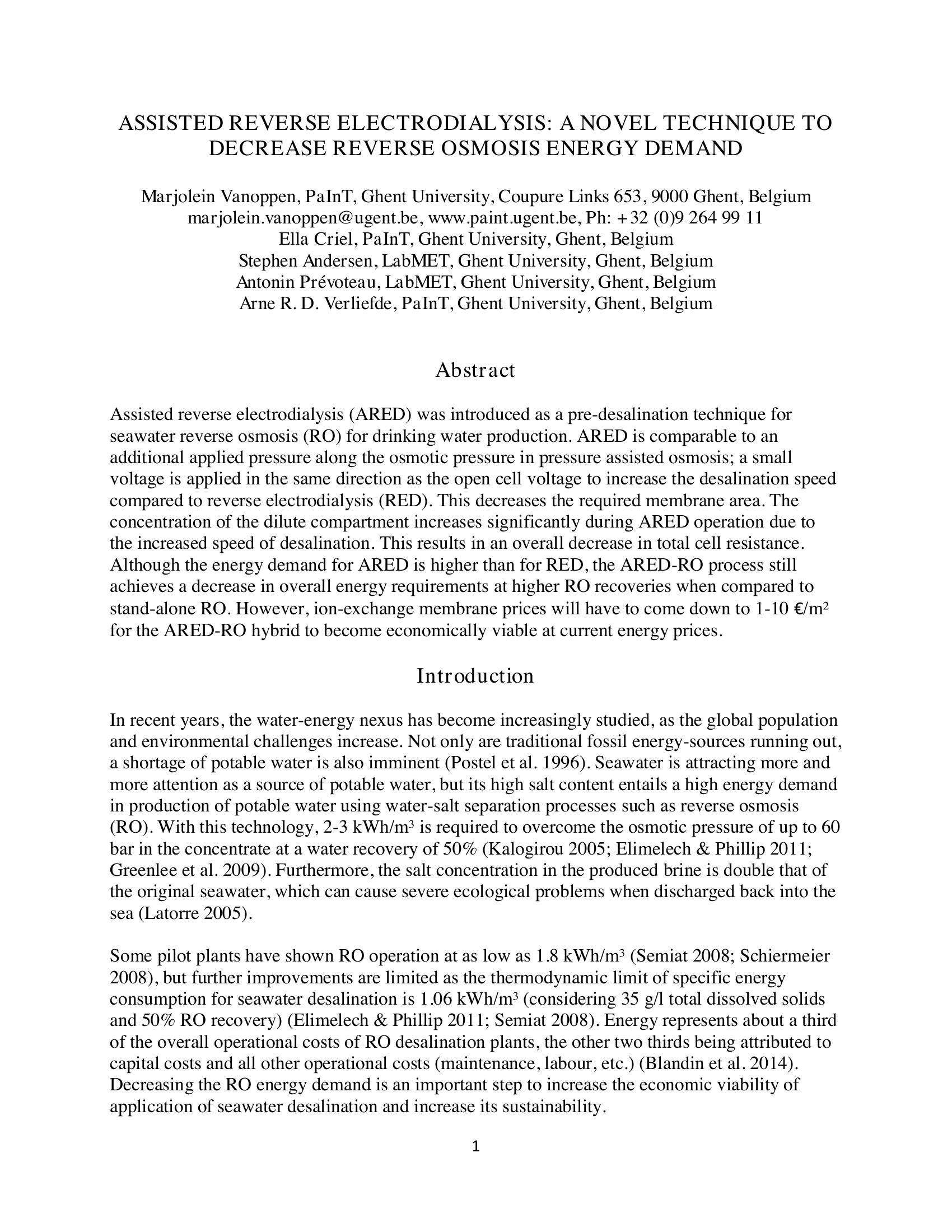 | Keywords | electrodialysis, desalination, assisted reverse electrodialysis |