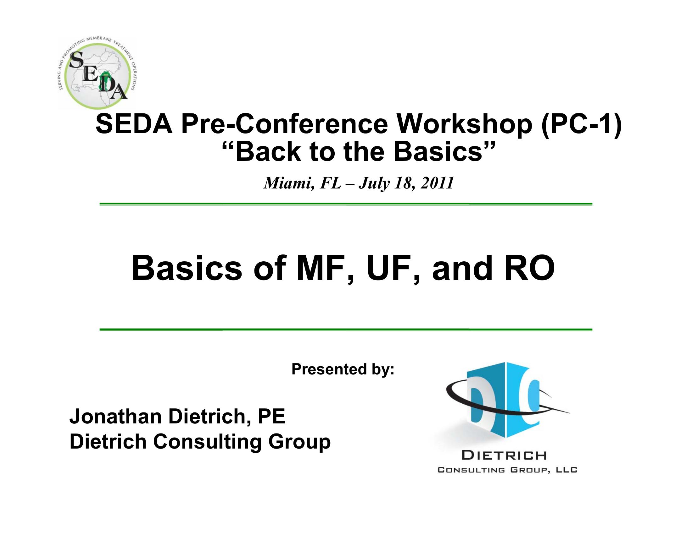 Basics of MF, UF, and RO