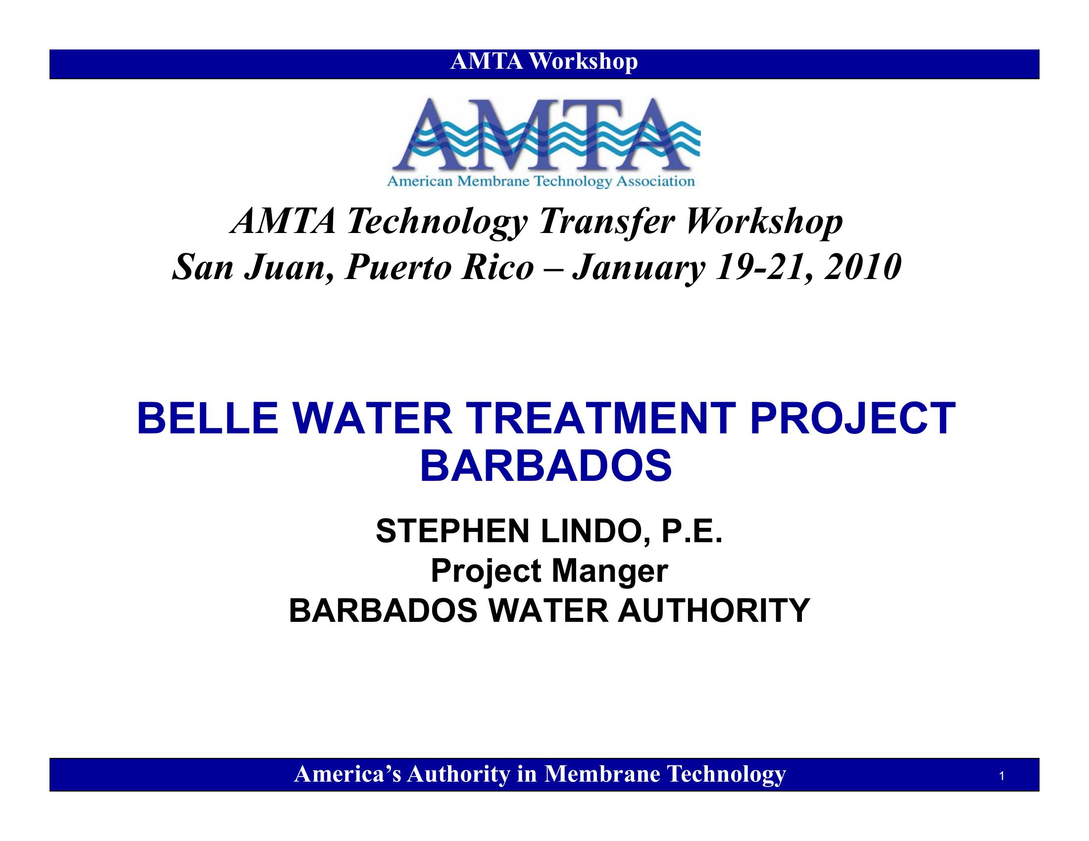 An overview of the water supply and water quality issues in Barbados and specifically the Belle Aquifer. This presentation describes the planning and development of the Belle reverse osmosis water treatment facility.