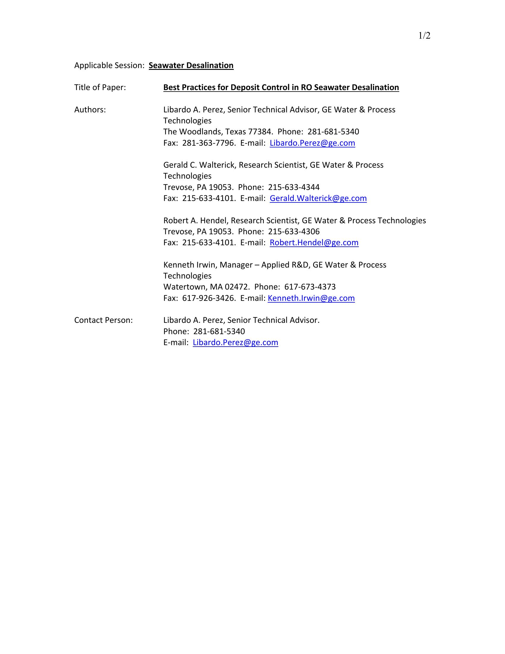 Paper presents technologies used to chemically treat RO systems and prevent scaling. Topics include methods to remove suspended solids and colloidal material, control methods to prevent biofouling and scaling by sparingly soluble