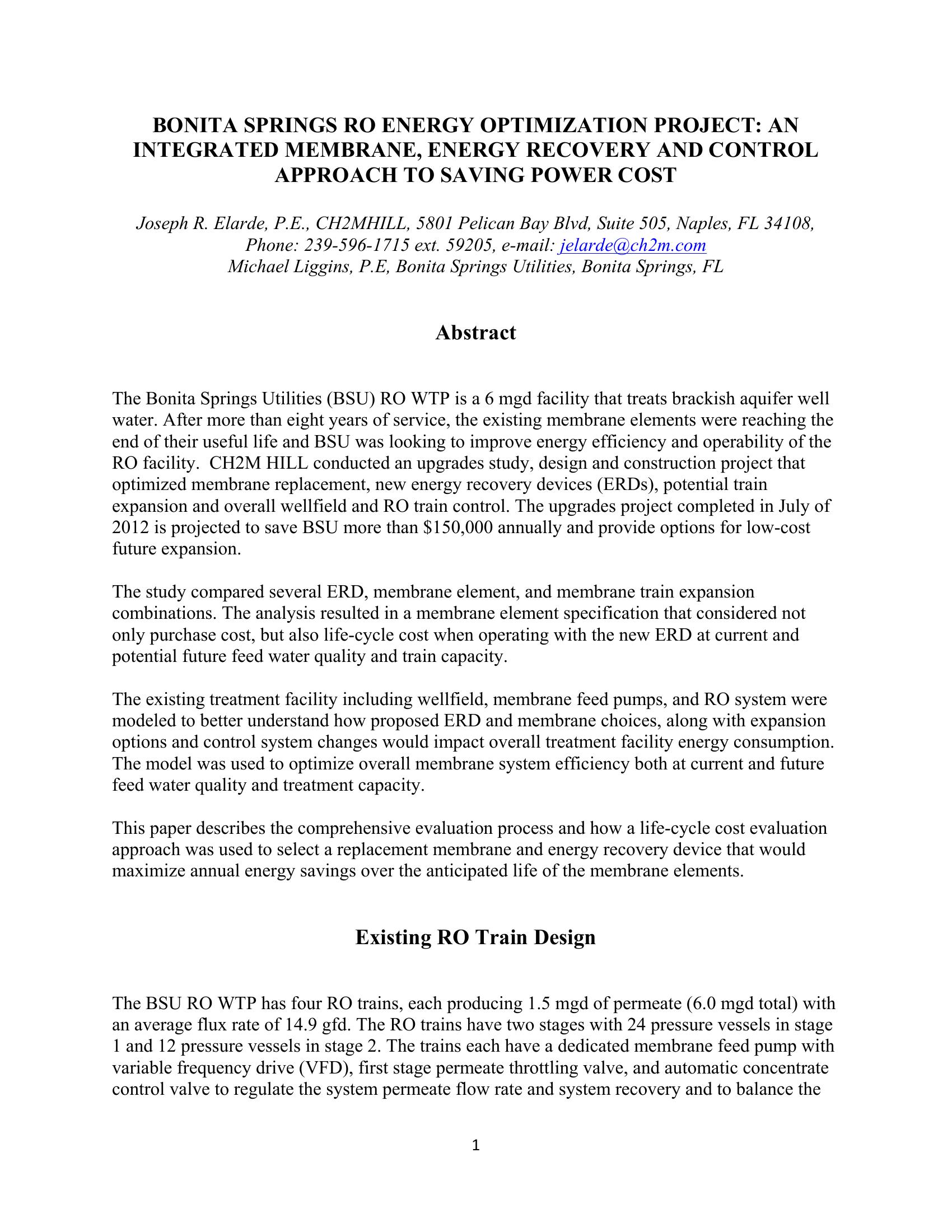 Bonita Springs RO Energy Optimization Project: An Integrated Membrane, Energy Recovery and Control Approach to Saving Power Cost