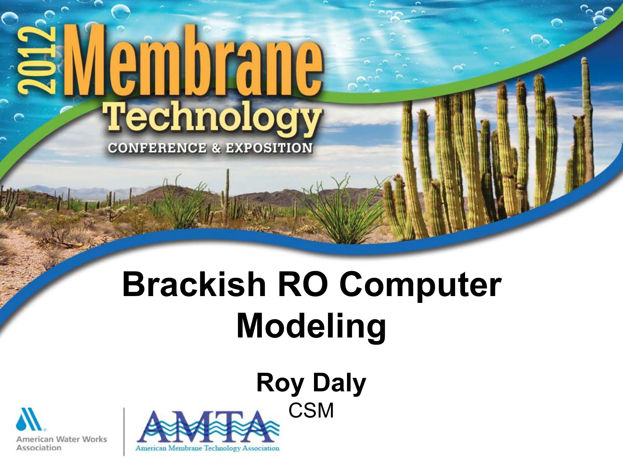 This presentation provides information about Brackish RO Computer Modeling by providing a case study of a 2.0 MGD Municipal potable water produced from ground water. it provides a list of key parameters for feed and permeate and presents a comparison of projected vs. actual (key) operating data
