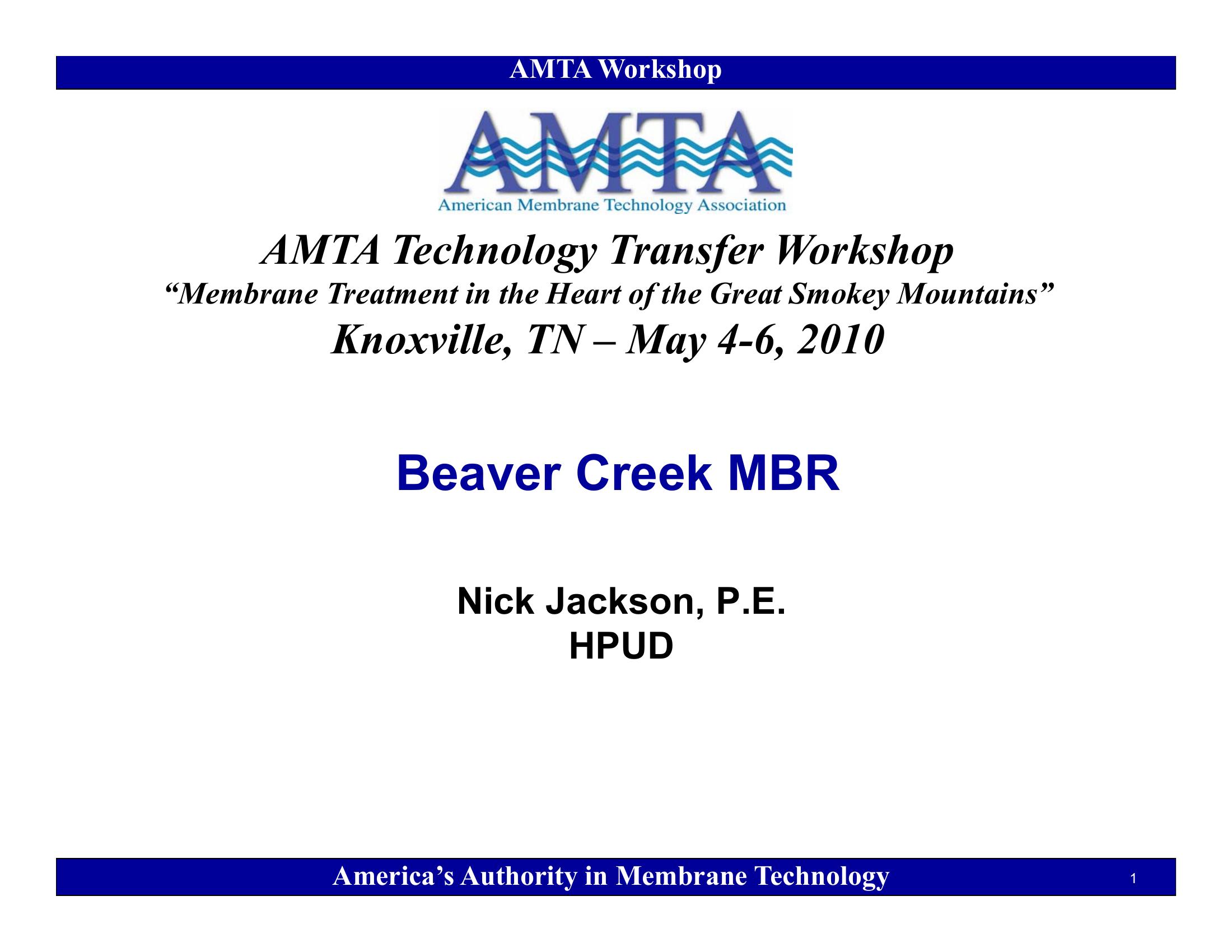 Detailed presentation on the Beaver Creek Waste Water Treatment Plant Membrane Bioreactor (MBR). The project is located in the Hallsdale-Powell Utility District in Knoxville, Tennessee.