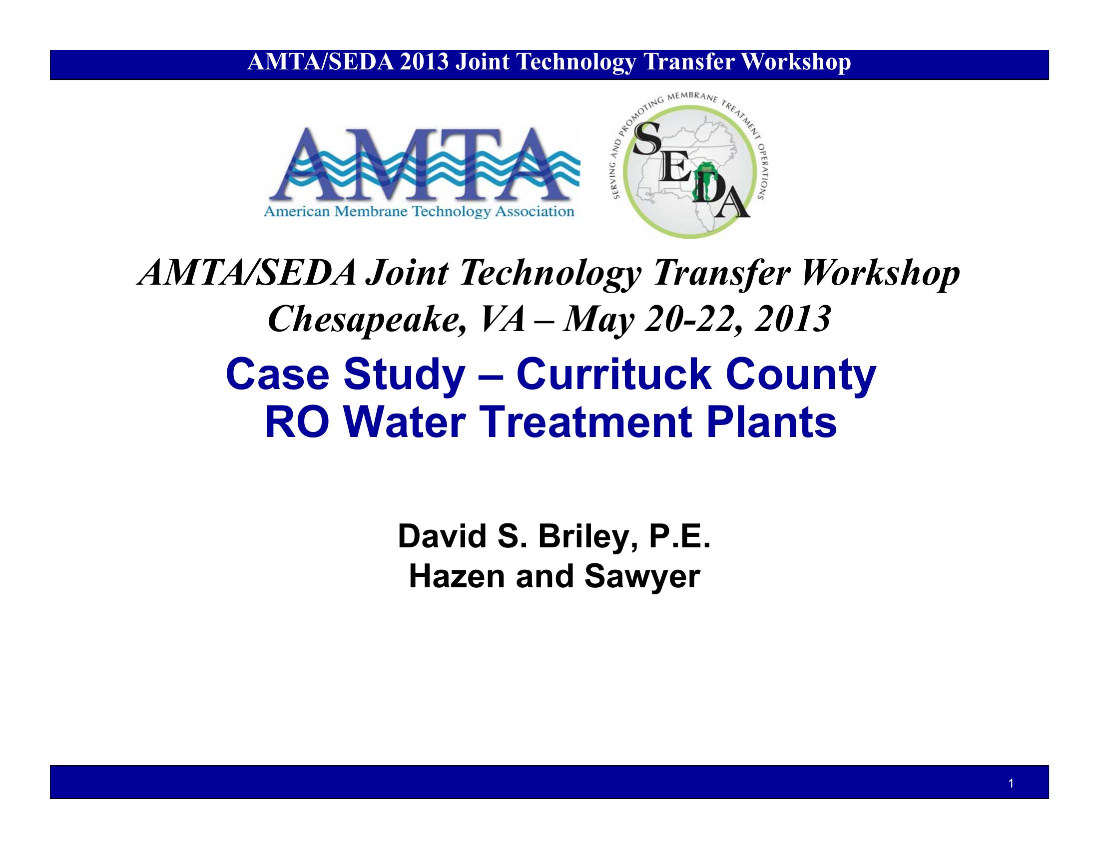 This PowerPoint presentation is a case study of the Currituck County Reverse Osmosis Water Treatment Plants