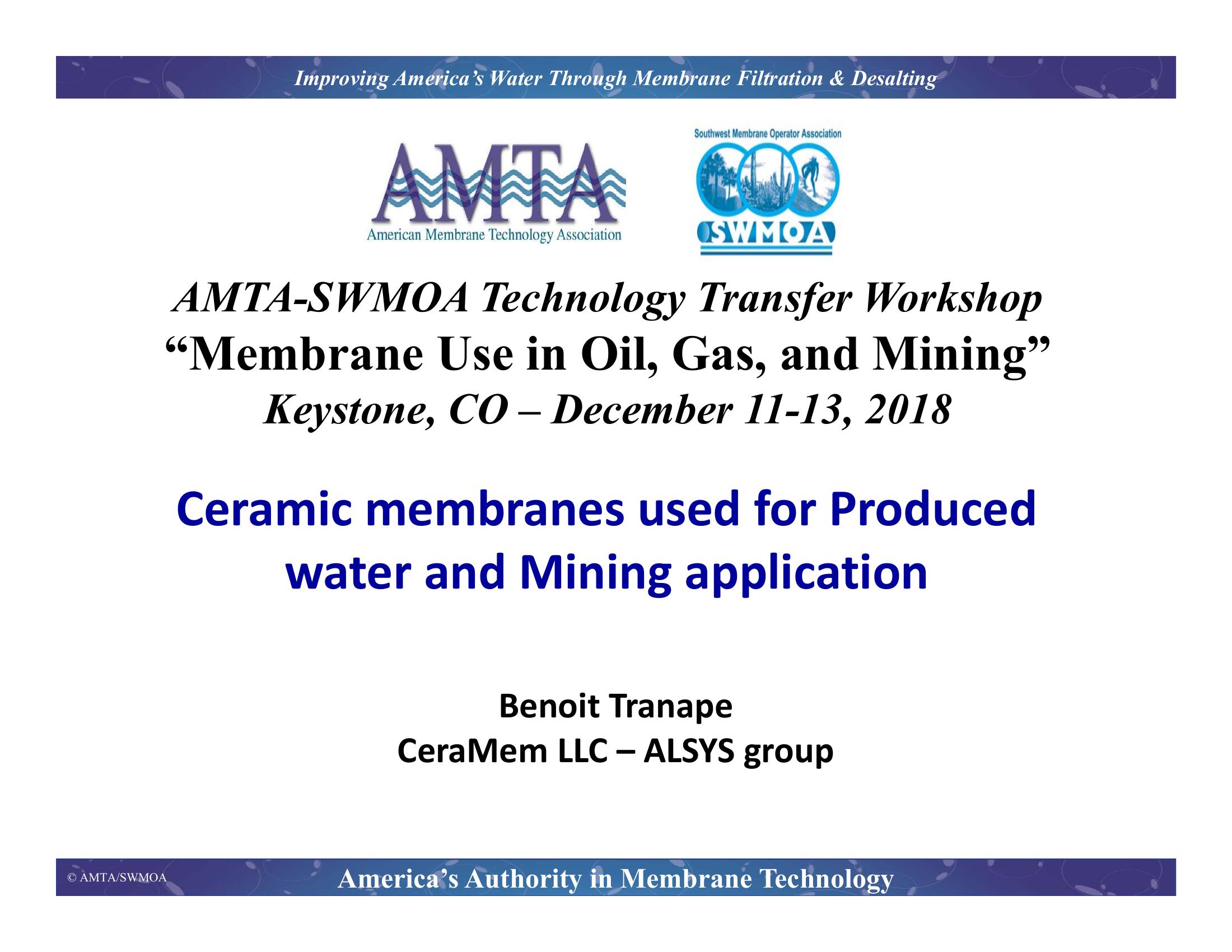 Ceramic membrane is a proven technology to recycle O&G produced water as well as tailing pond effluent from the mining industry. Several case studies will be detailed. A 50,000 bpd produced water reclamation facility has been in operation since 2012 using CeraMem membranes. A Lithium mine in Australia selected CeraMem to treat a 150 m3/h tailing pond effluent following a pilot study.