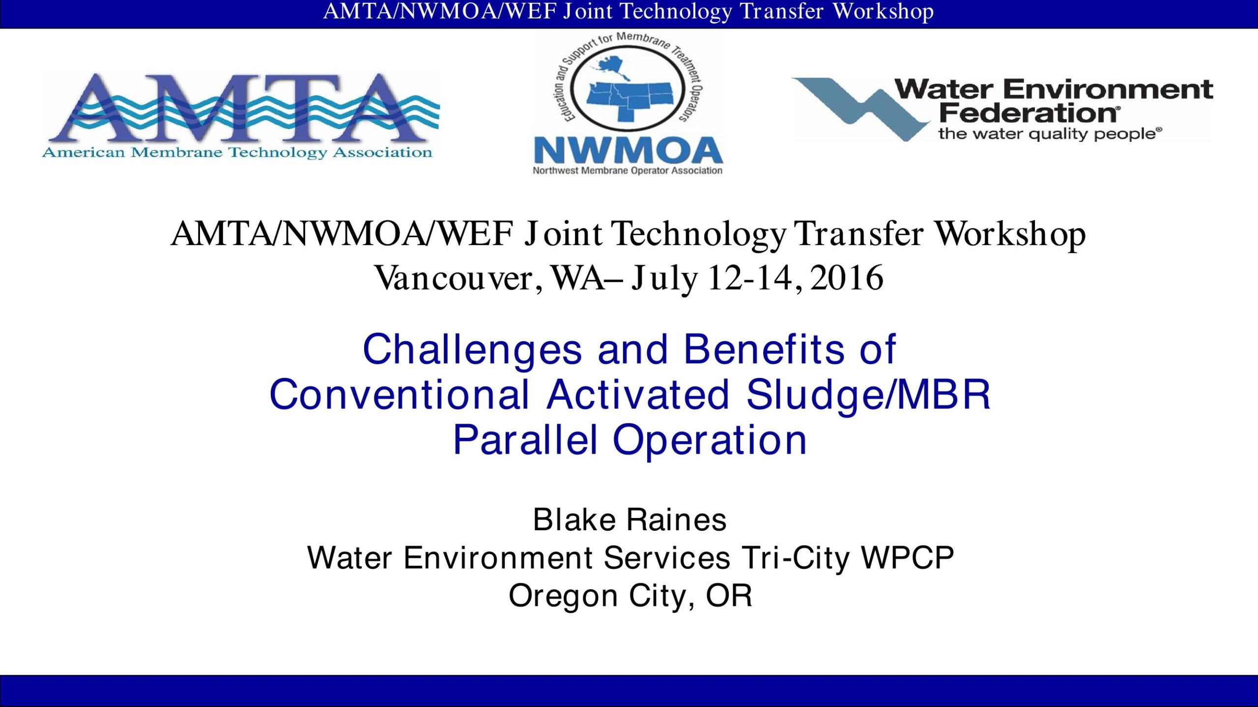 My speech will be about the challenges and obstacles of operating an MBR plant parallel to an activated sludge plant. I’ll describe what we have done to overcome these obstacles and how the MBR plant is such an asset to us from a capacity standpoint as well as a regulatory standpoint.