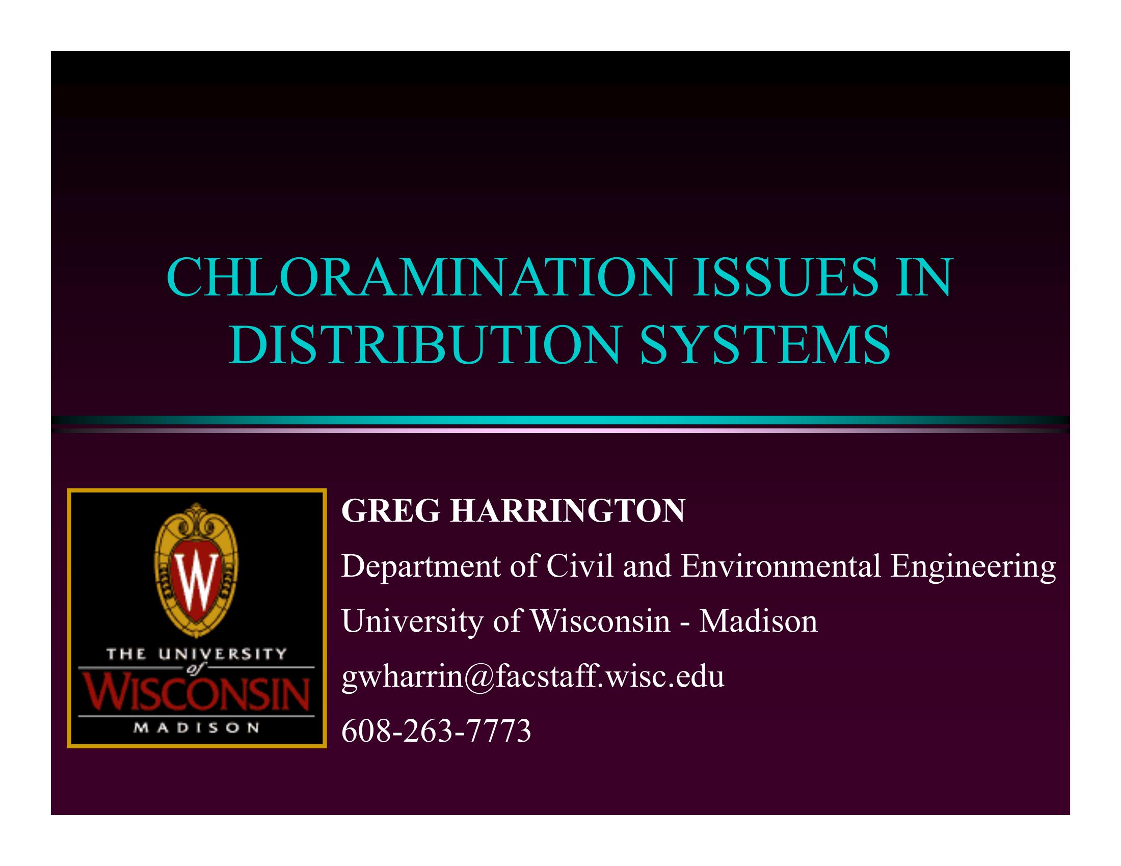 | Keywords | Chloramination issues in distribution systems, problems with chloramination causing nitrification, Chloramination issues |