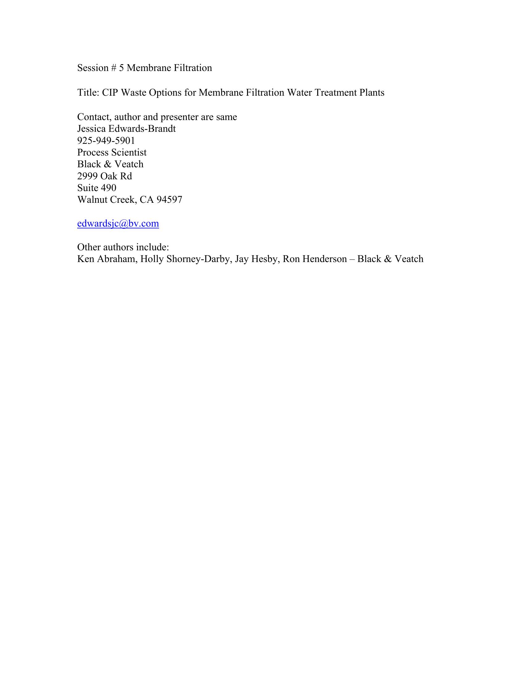 For some utilities, disposal of the waste streams generated by membrane filtration and MF/UF membrane systems that do not have available options for disposal is becoming a challenge. This paper discusses the various treatment and disposal alternatives for CIP waste streams from MF/UF utilities. Typical waste streams from MF/UF utilities include spent backwash (BW), maintenance wash (MW) and clean-in-place (CIP) waste streams. Since some water utilities do not have access to a sewer line or are not near a wastewater facility, their only disposal option is recycling or further treatment of these waste streams. Treatment and subsequent recycle of waste streams generated by membrane filtration processes requires coordination between the regulatory agency, the utility, and the design engineers. Equally important, potential impacts on primary treatment process must be considered if recycling of waste is selected. The CIP waste stream is generally the most problematical if disposal is unavailable because of the high concentration chemical stream. This paper discusses the nature of CIP waste stream, while considering volume and impacts of the treatment followed by recycling within the water treatment plant (WTP) or disposal. In addition, two evaluations of experimental treatment and recycle of CIP waste are discussed.