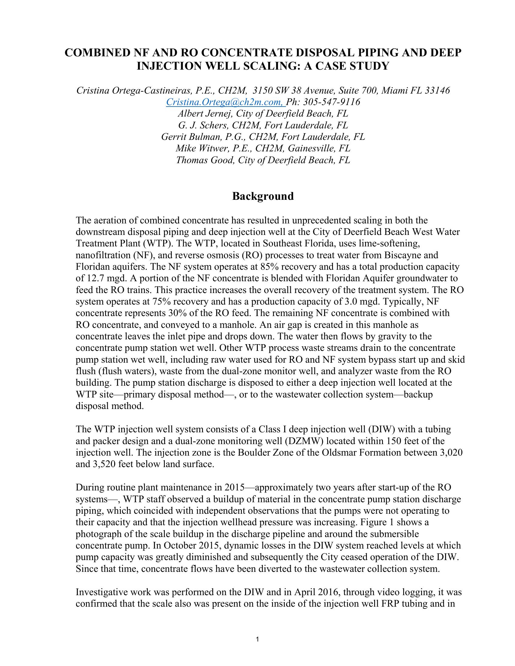 Combined NF and RO Concentrate Disposal Piping and Deep Injection Well Scaling: A Case Study