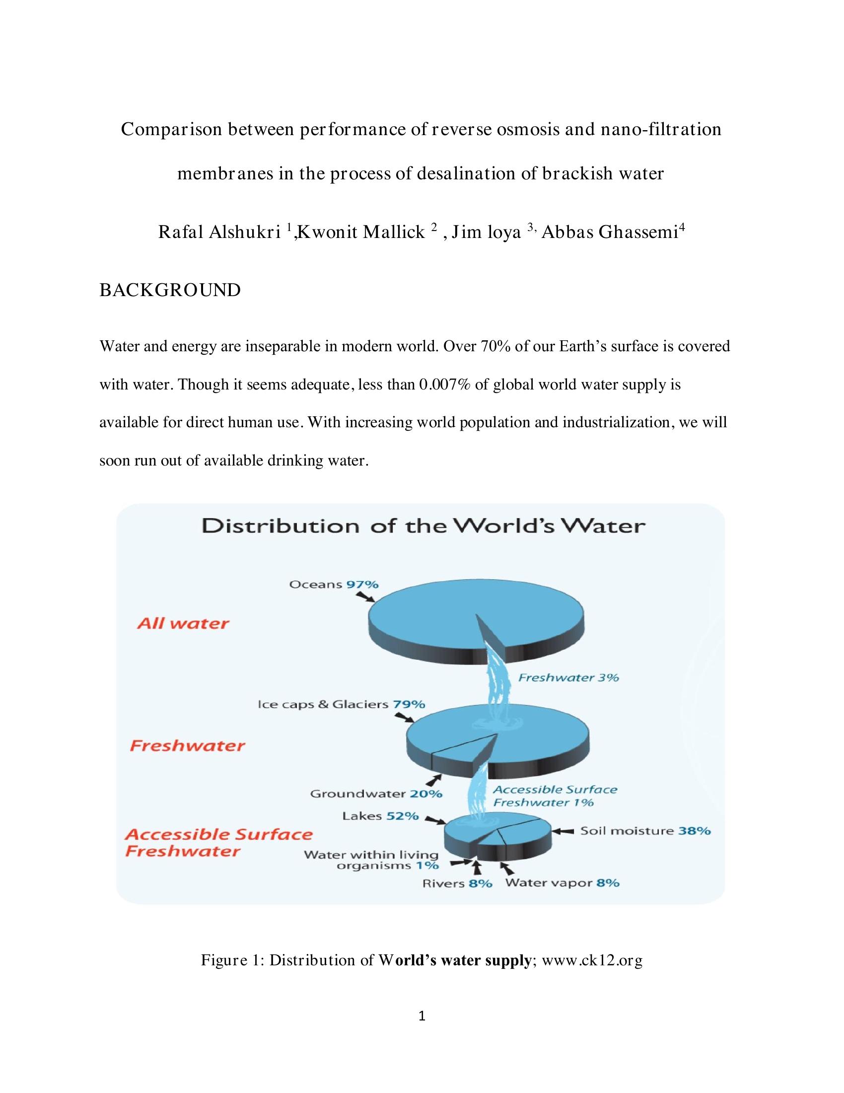 | Keywords | Comparison, Reverse Osmosis, Nano-filtration, brackish, bench scale |