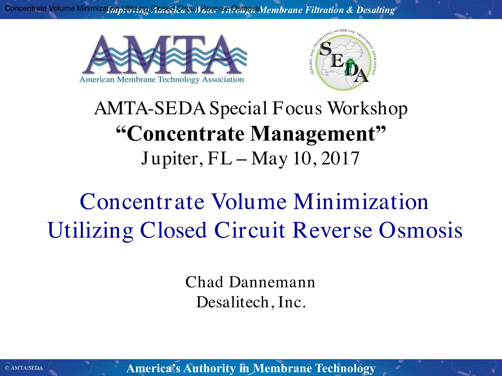 Closed Circuit Reverse Osmosis (CCRO) has demonstrated itself in a variety of environments and industries to provide a host of benefits including minimizing concentrate volumes. A concise introduction to the flexible CCRO process interlaced with explanation as to how maximum recoveries are achieved while minimizing the inefficiences related to traditional reverse osmosis configurations will be presented