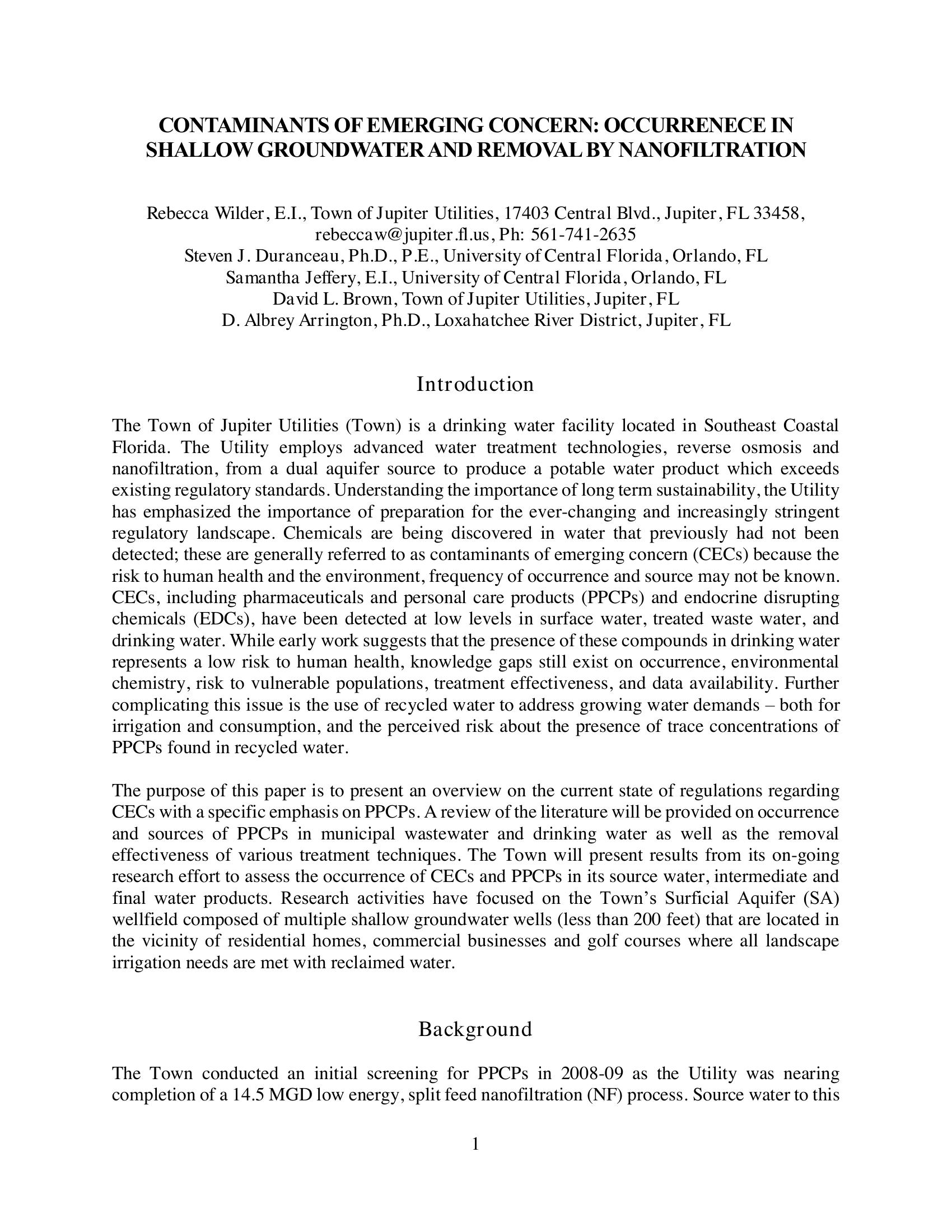 | Keywords | CEC; Jupiter, PPCP, emerging contaminants, regulations |