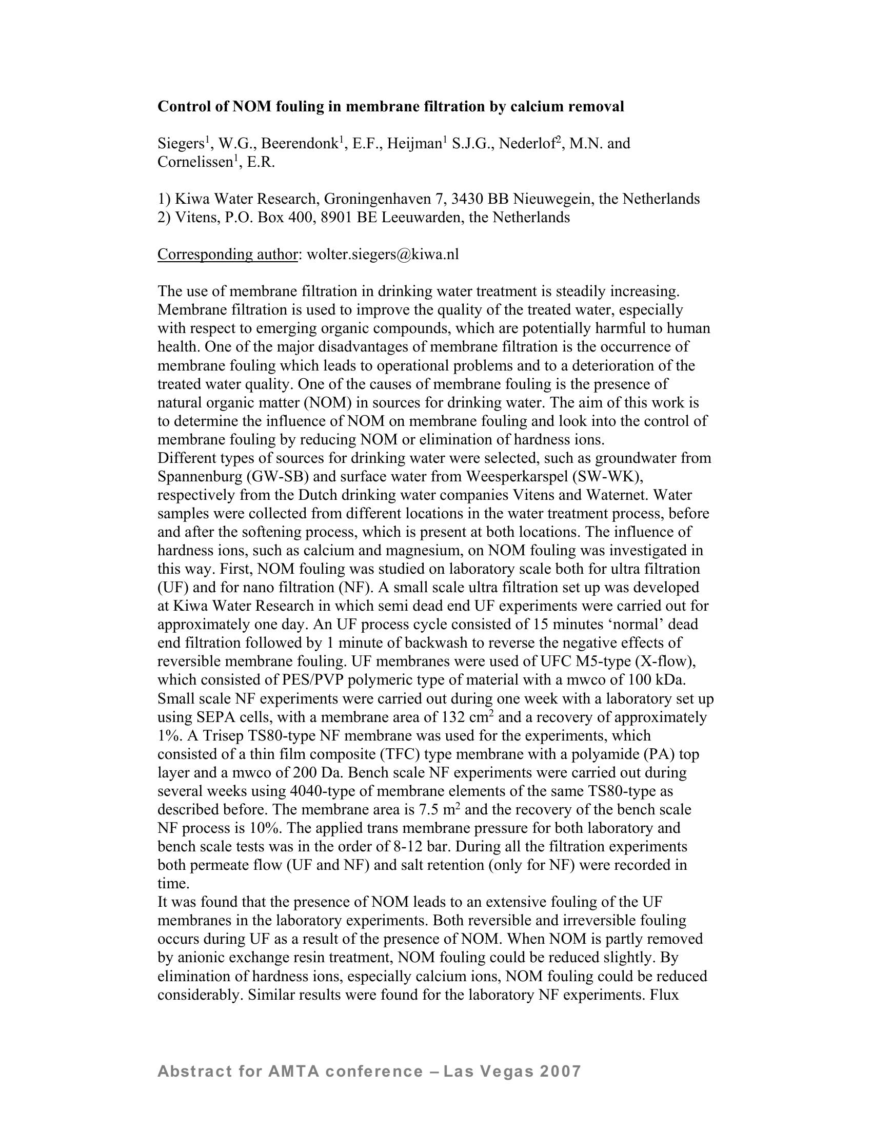 | Keywords | natural organic matter (NOM), membrane fouling, Scaling or inorganic fouling, Biofouling, Particulate or colloidal fouling, RO/MF/UF membranes, Technical University of Delft |