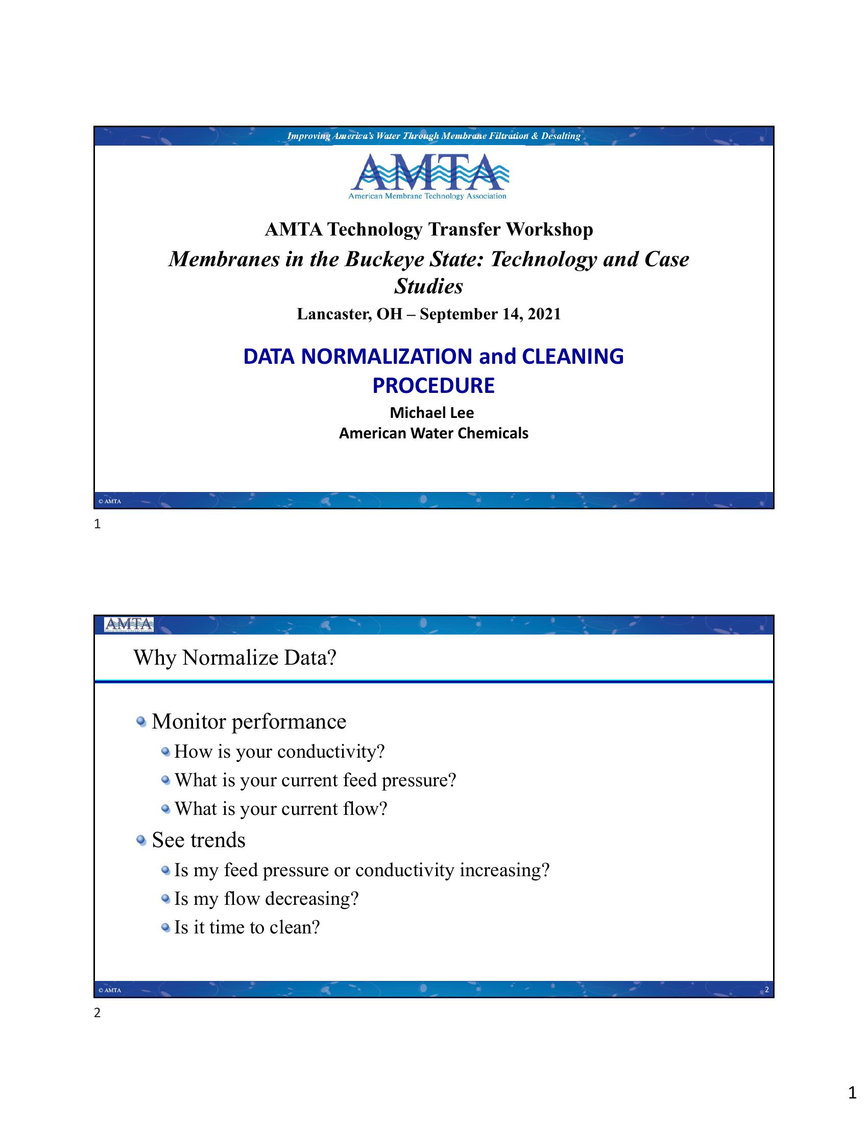 This 30 minute presentation will discusses the most effective procedures for membrane cleaning, and explains the role of high pH and low pH cleaning chemicals. As well as the value of normalized data