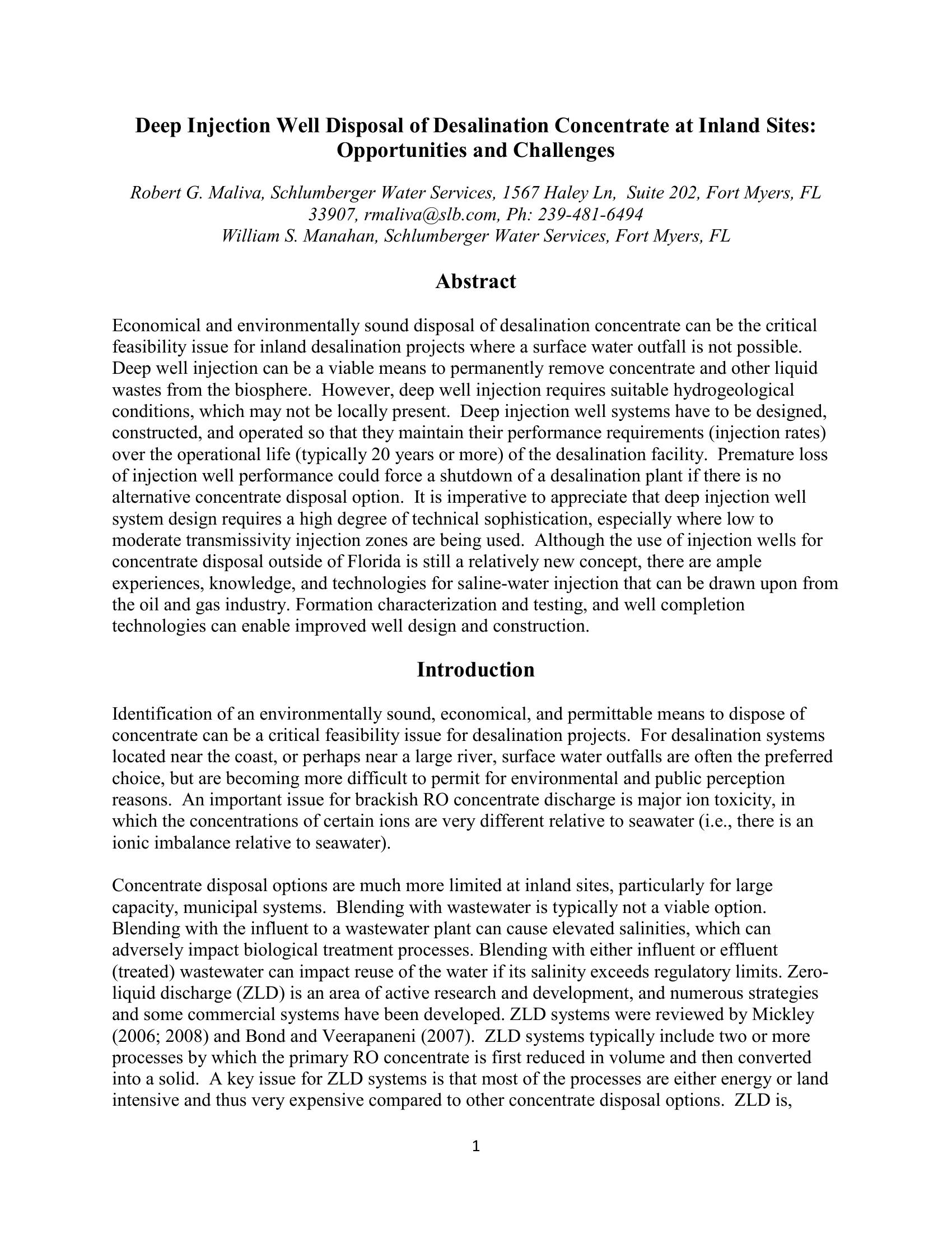 | Keywords | Deep well injection, Hydrogeology, RO Concentrate |