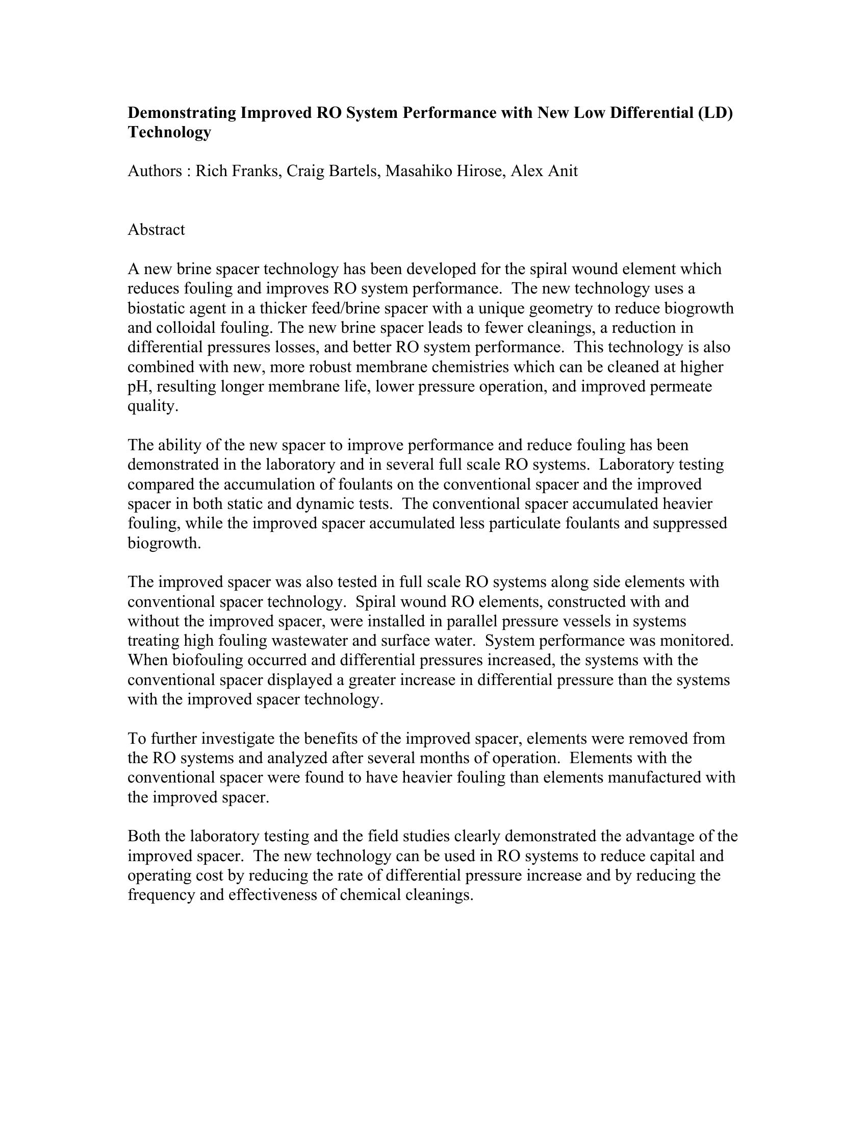 Demonstrating Improved RO System Performance with New Low Differential (LD) Technology