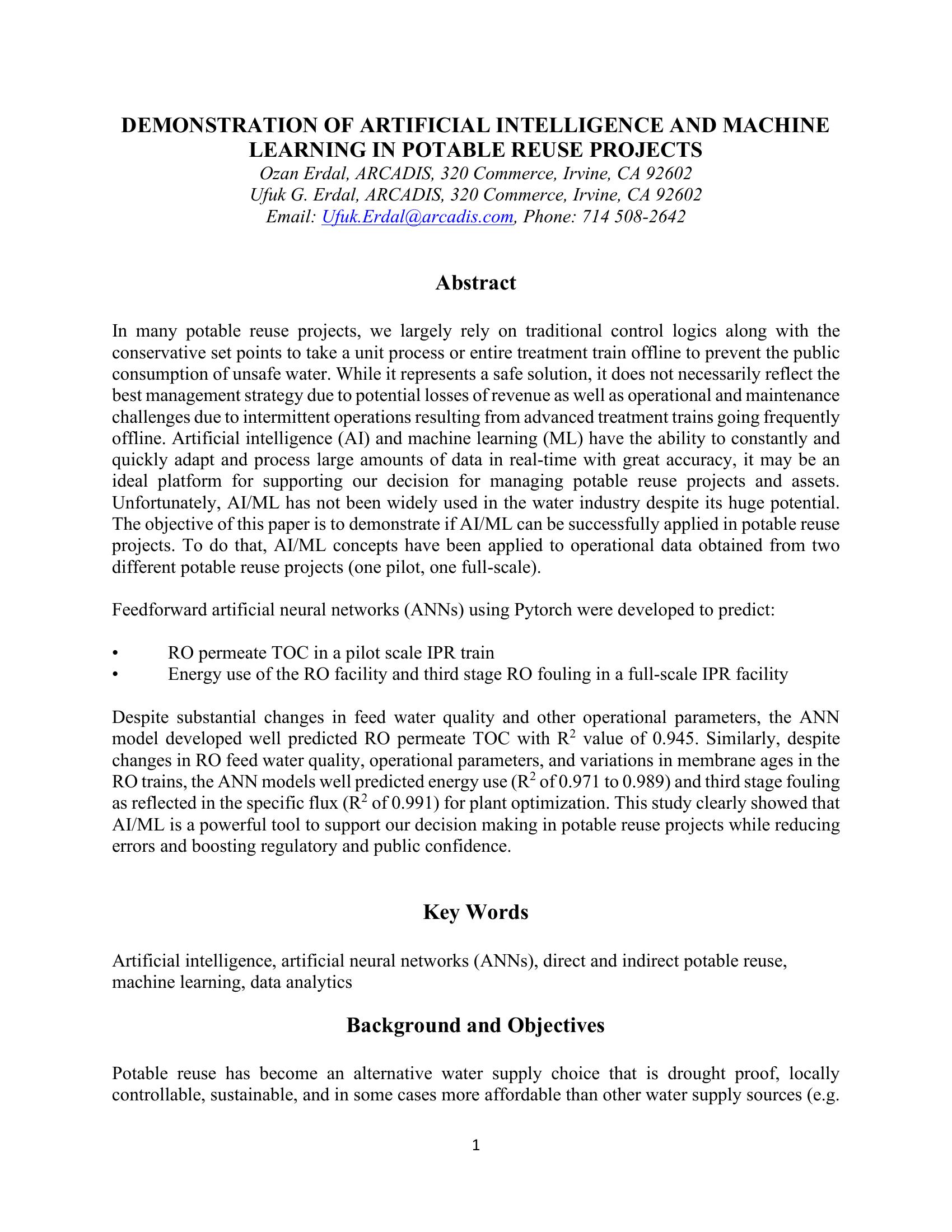 | Keywords | Artificial Intelligence, Direct and Indirect Potable Reuse, Data Analytics |