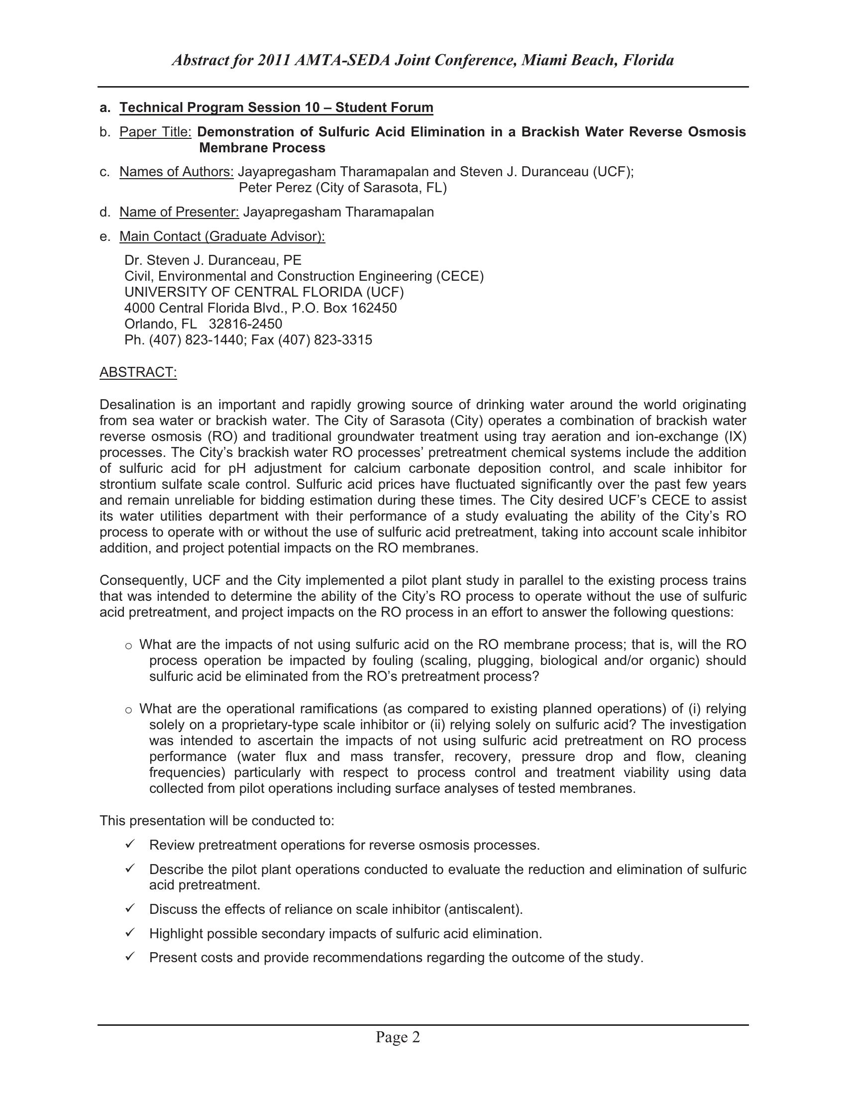 The paper describes a study by the University of Central Florida for the City of Sarasota to determine whether sulfuric acid could be eliminated from the reverse osmosis process.