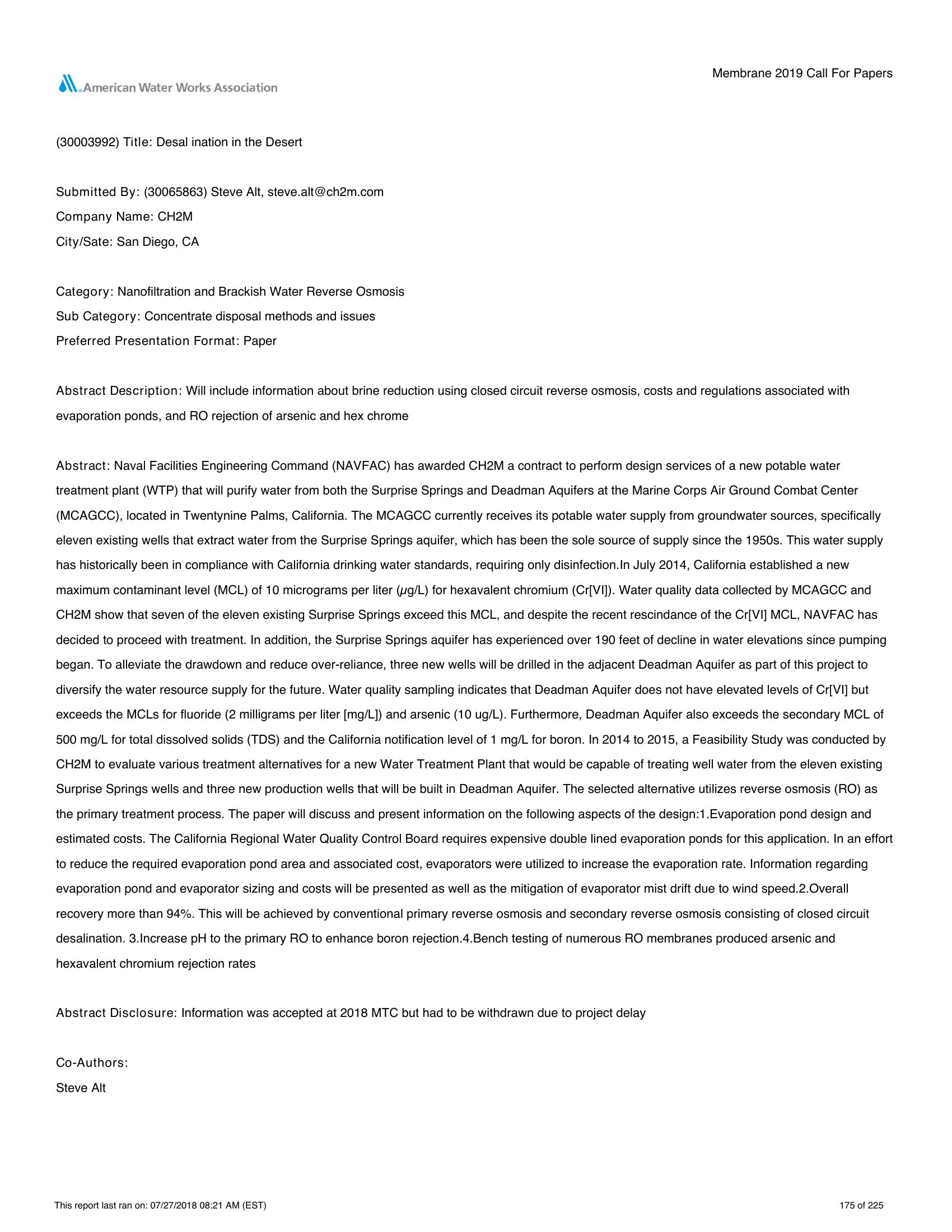 Will include information about brine reduction using closed circuit reverse osmosis, costs and regulations associated with evaporation ponds, and RO rejection of arsenic and hex chrome