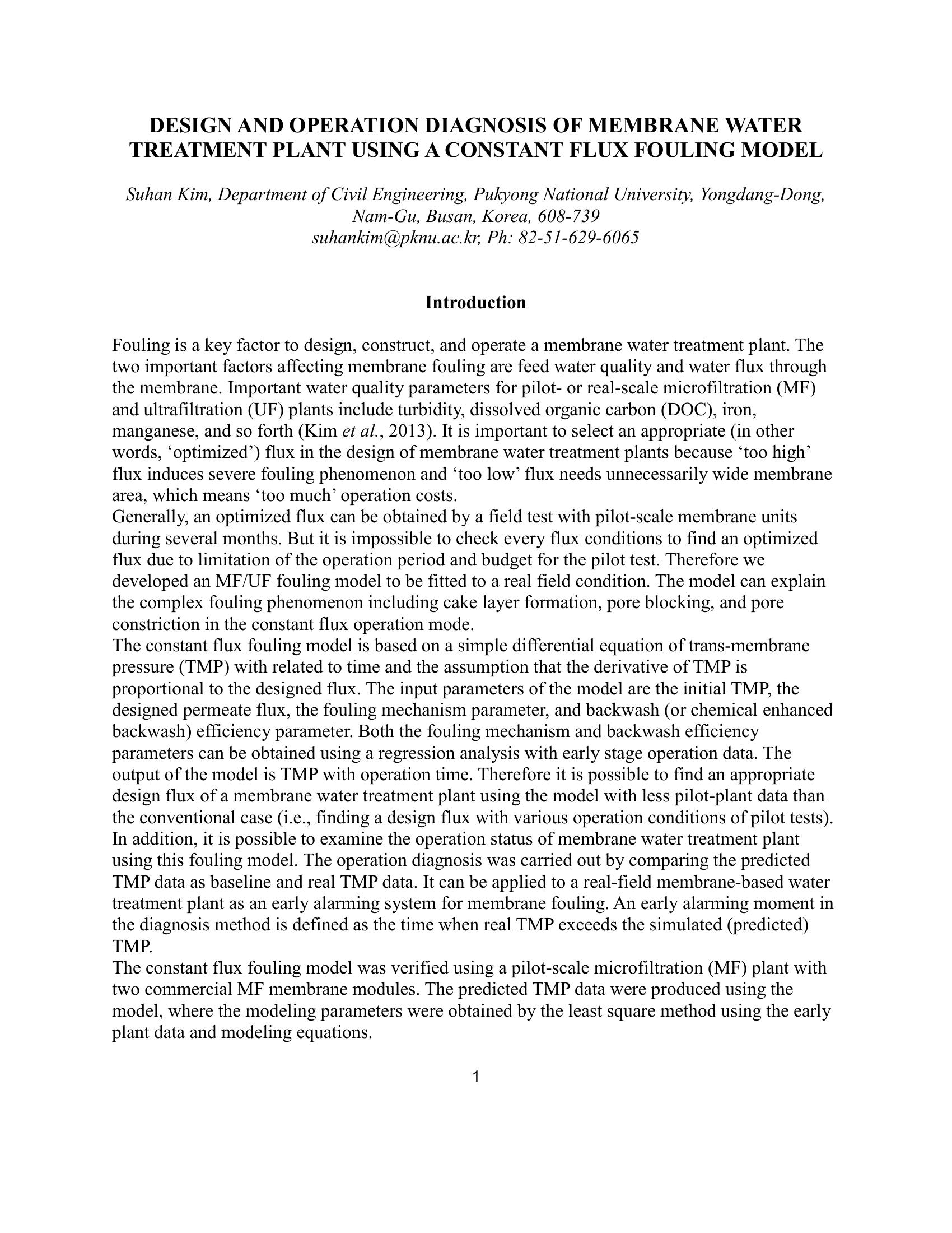 Design and Operation Diagnosis of Membrane Water Treatment Plant Using a Constant Flux Fouling Model
