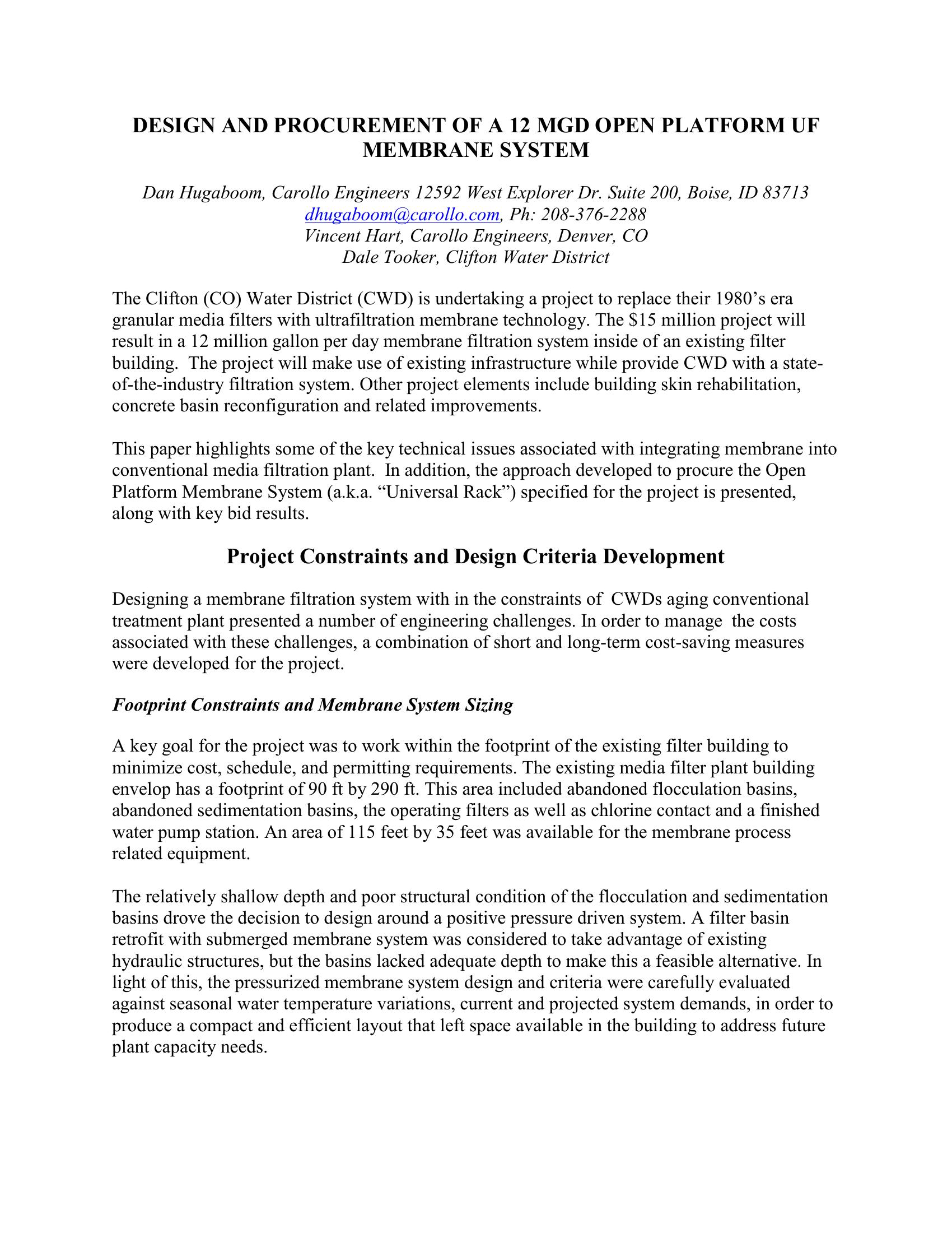 Design and Procurement of a 12 MGD Open Platform UF Membrane System