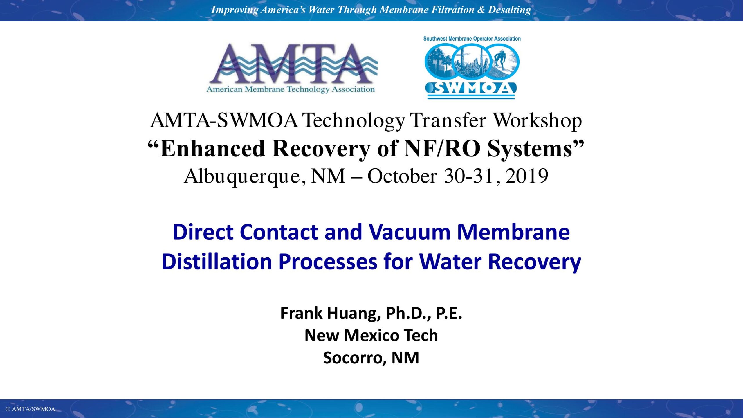 | Keywords | Direct Contact Membrane Distillation, Vacuum Membrane Distillation, Desalination |