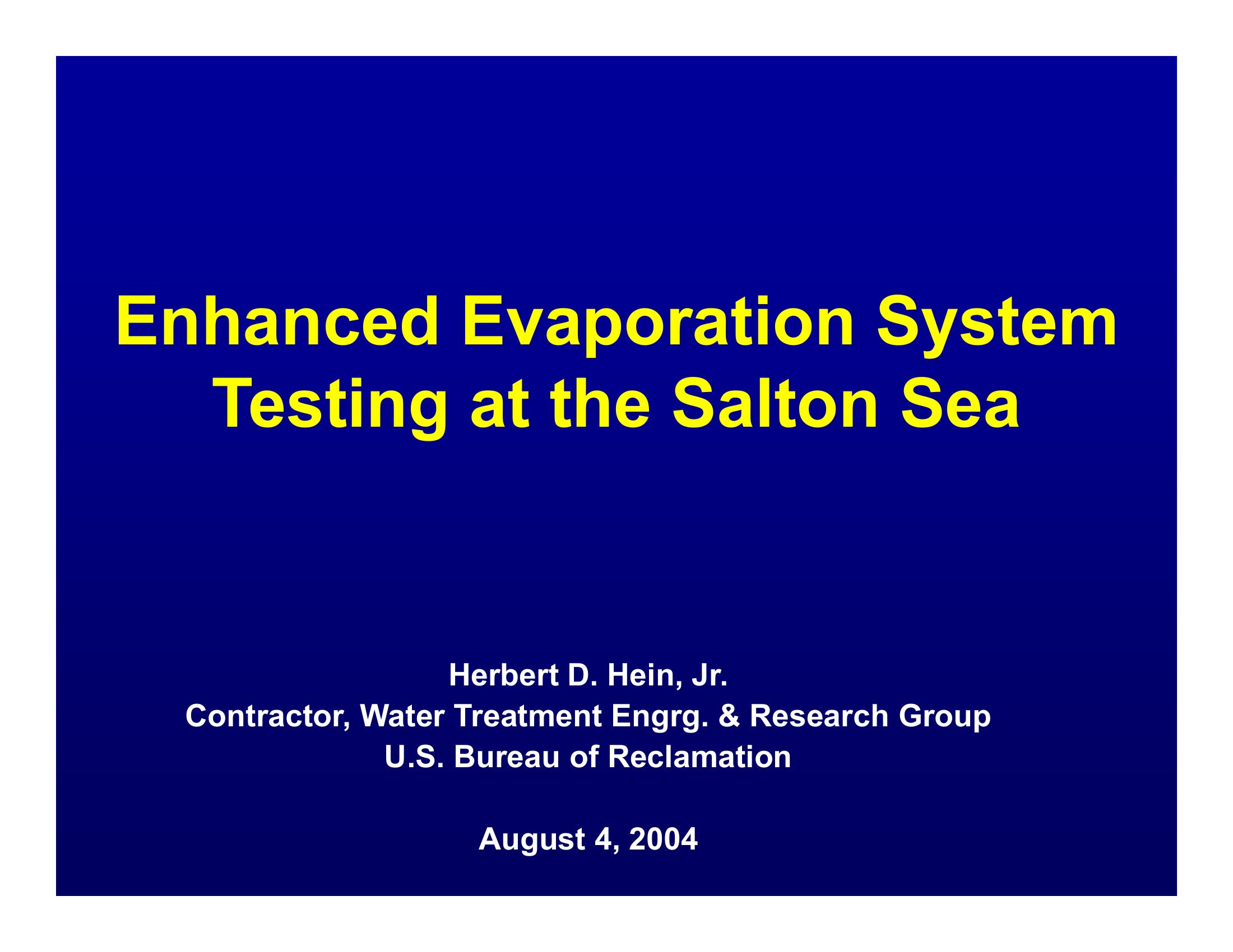 Report on testing performed on various enhanced evaporation systems to minimize environmental impacts to the Salton Sea from increased salinity.