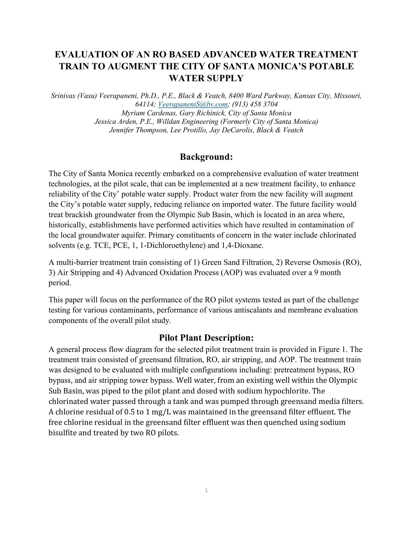 Evaluation Of An RO Based Advanced Water Treatment Train To Augment The City Of Santa Monica’s Potable Water Supply