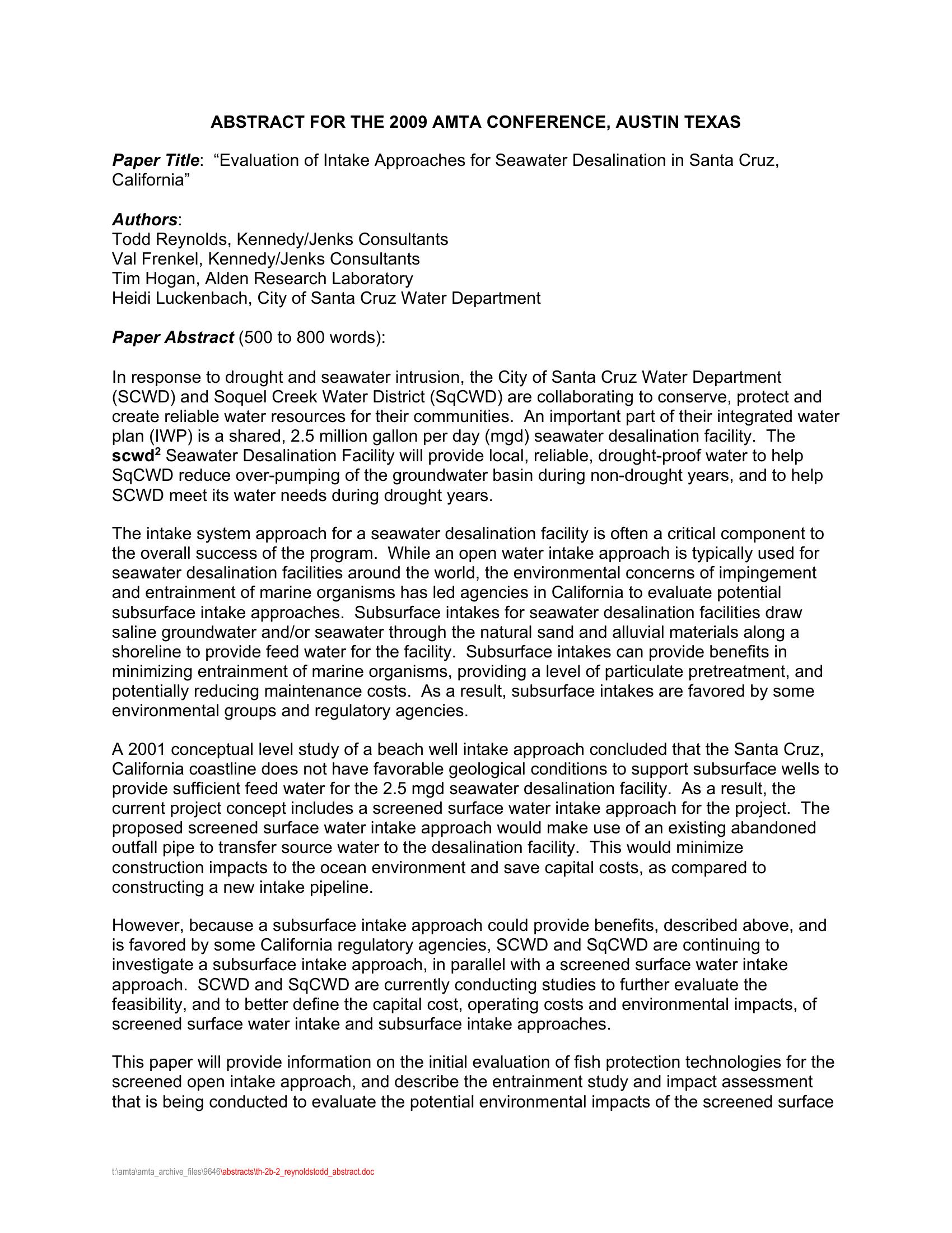 | Keywords | intake configurations, Santa Cruz desalination |