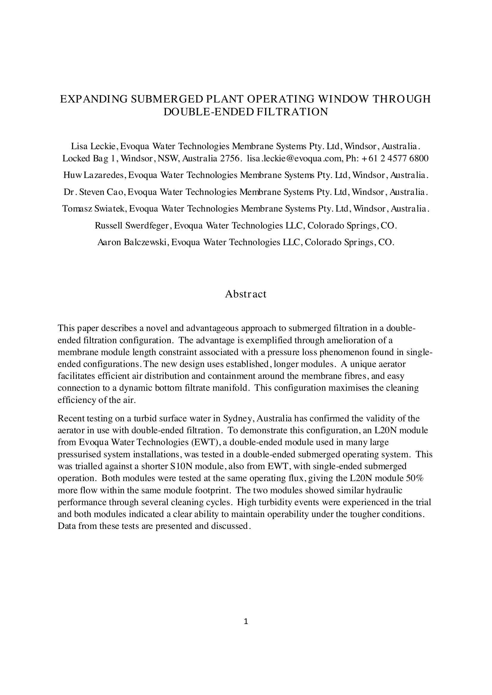 Expanding Submerged Plant Operating Window Through Double-Ended Filtration