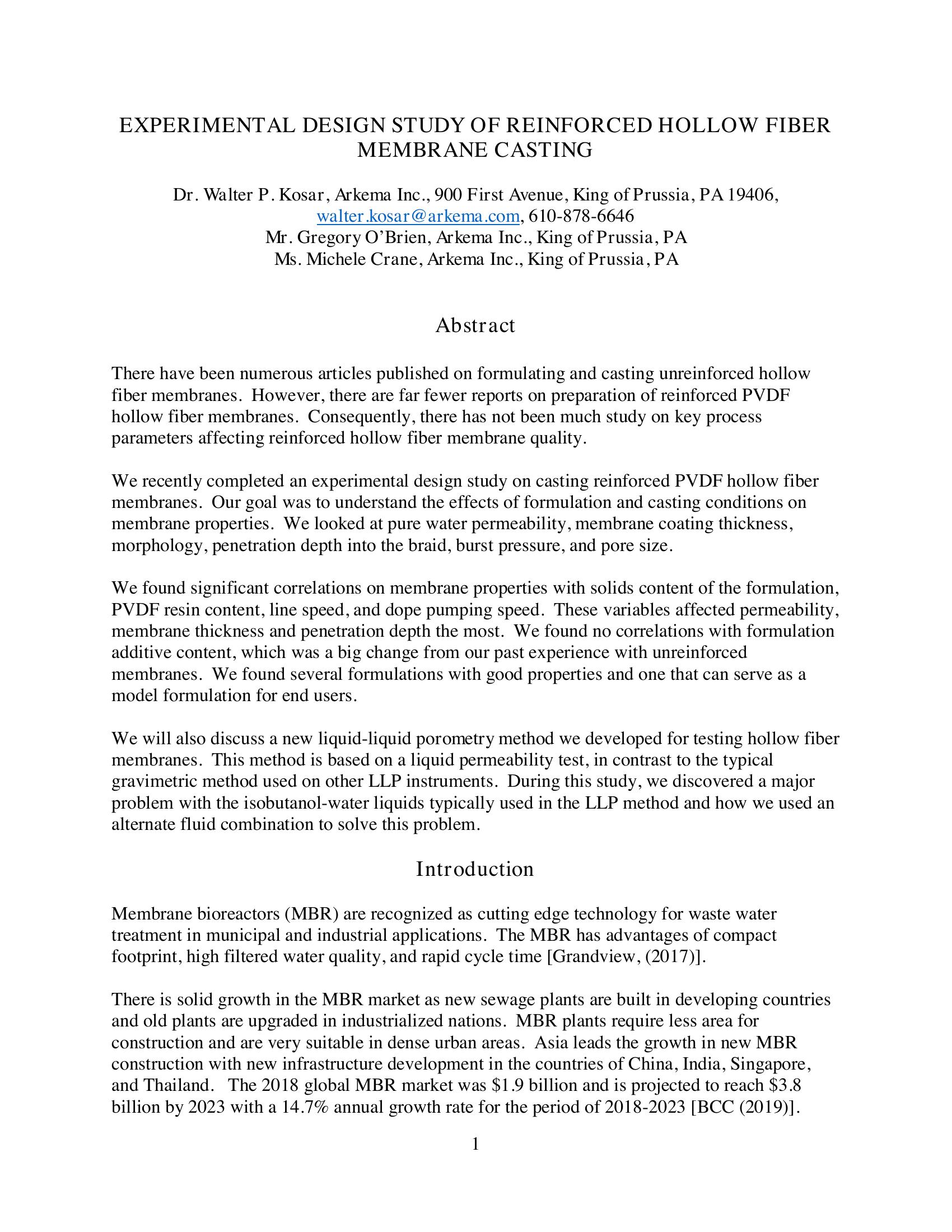 | Keywords | Hollow Fiber, Membrane Bioreactors, PVDF |