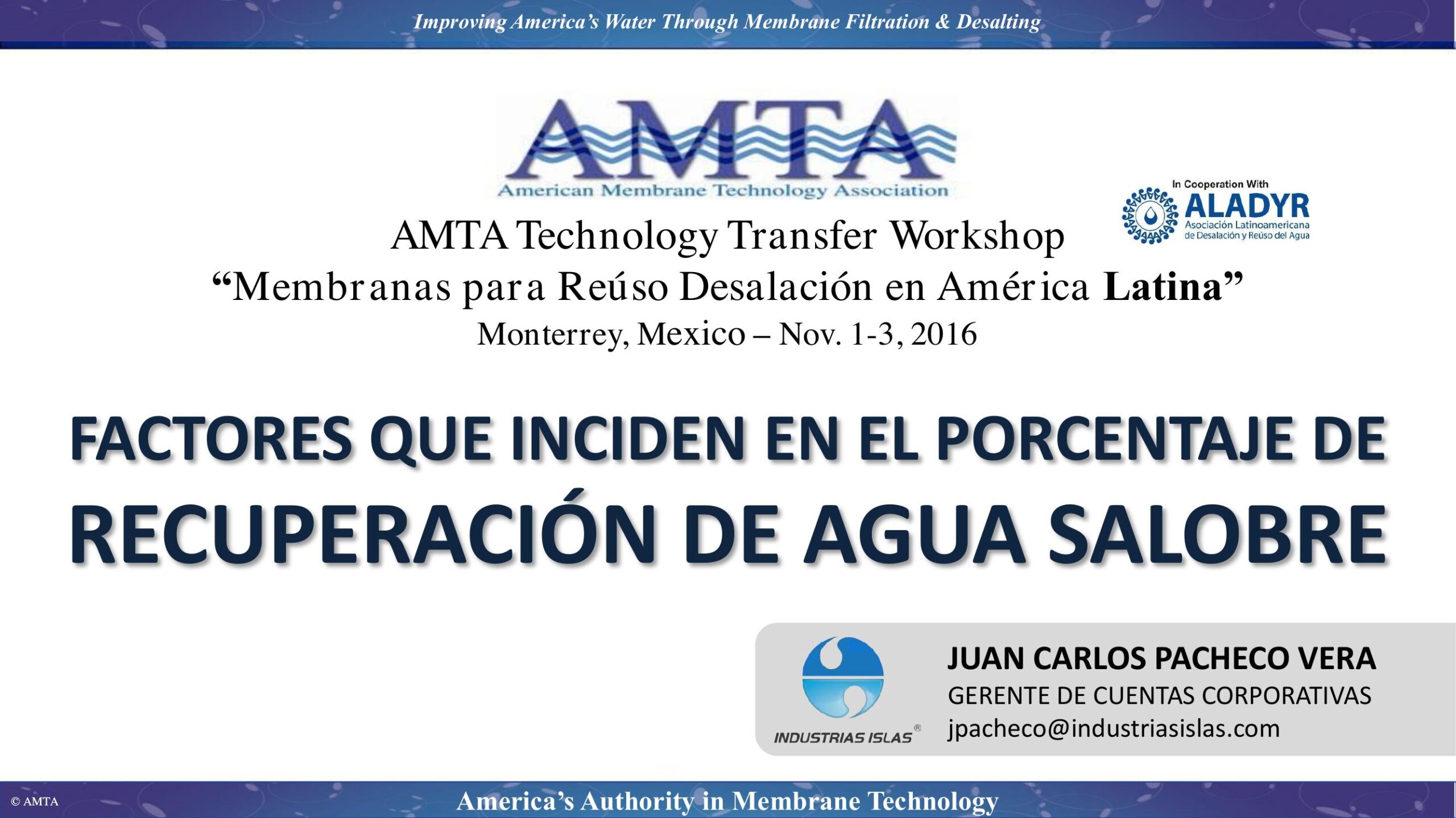 This presentation shows the main factors to consider in the selection of demineralization technology and equipment design for water treatment processes. 2 success cases where the percentage of recovery through out demineralization process has been increased, providing economic and environmental benefits to the client.