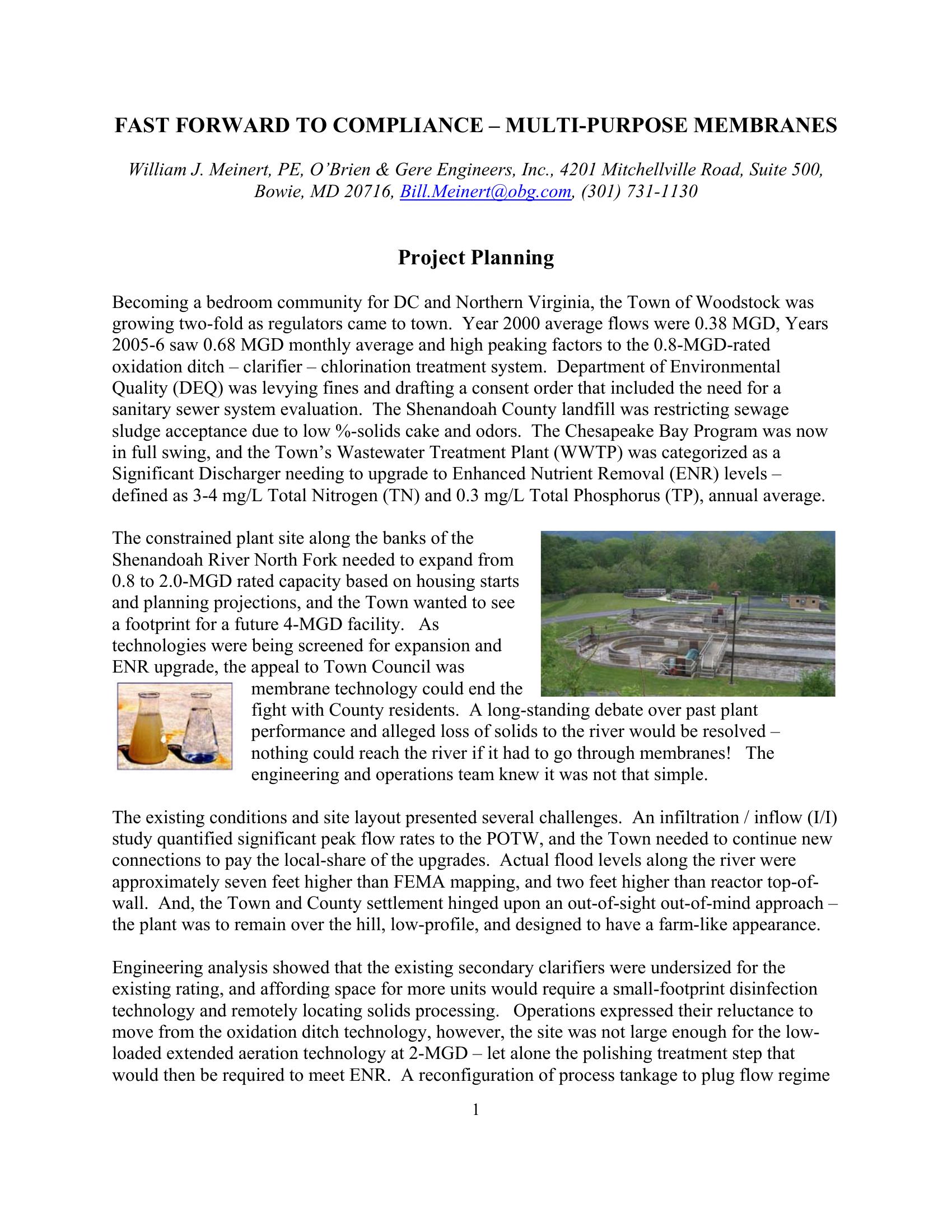 Woodstock Virginia wastewater treatment plant expanded operations using membrane bioreactors (MBR). O&M costs and construction issues are addressed.