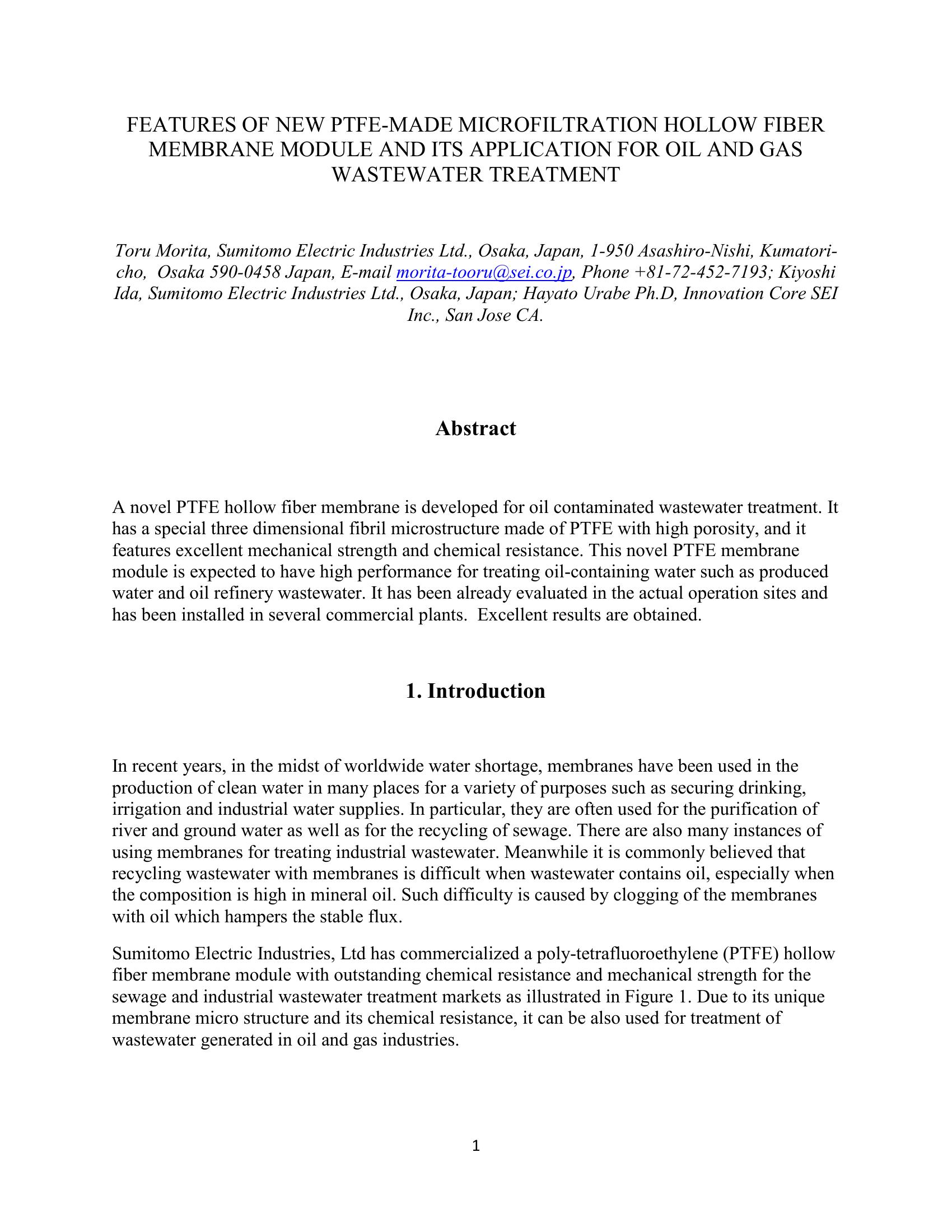 | Keywords | PTFE Microfiltration, Hollow Fiber, Oil Wastewater |