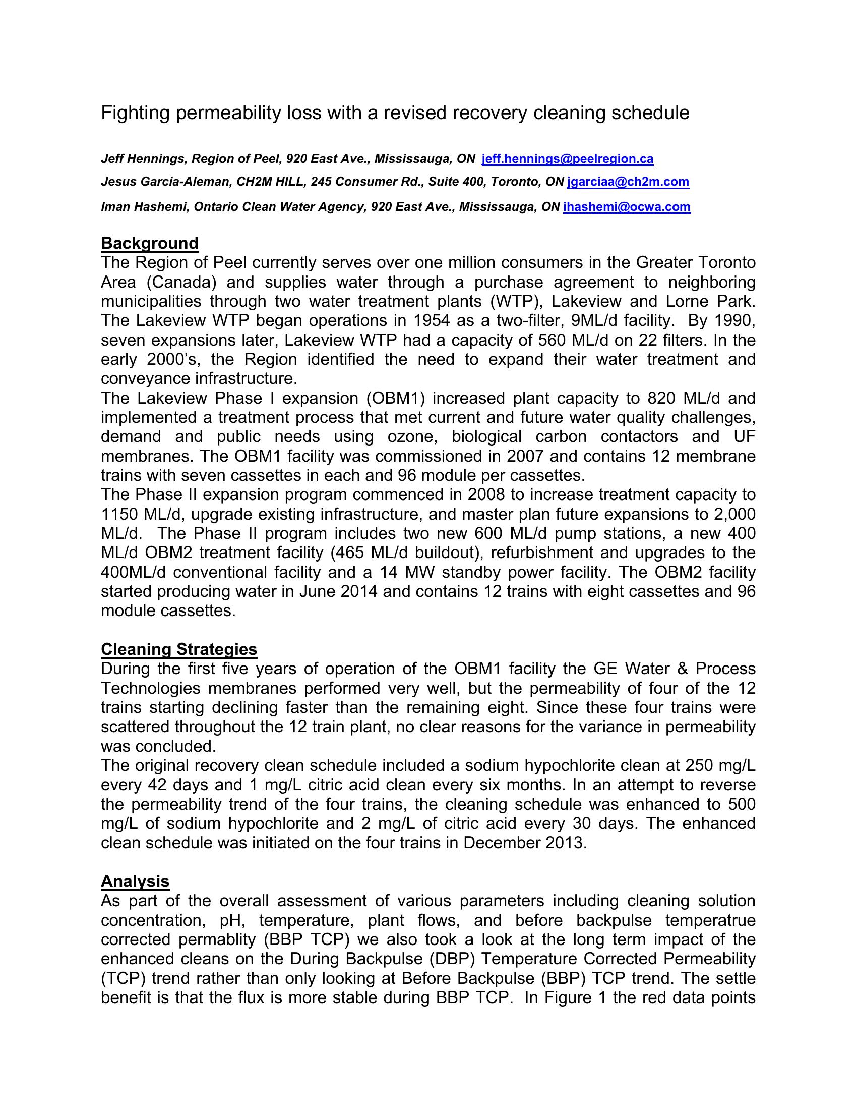 | Keywords | Permeability Loss, Recovery Cleaning, Region of Peel, Canada, Enhanced Cleaning |