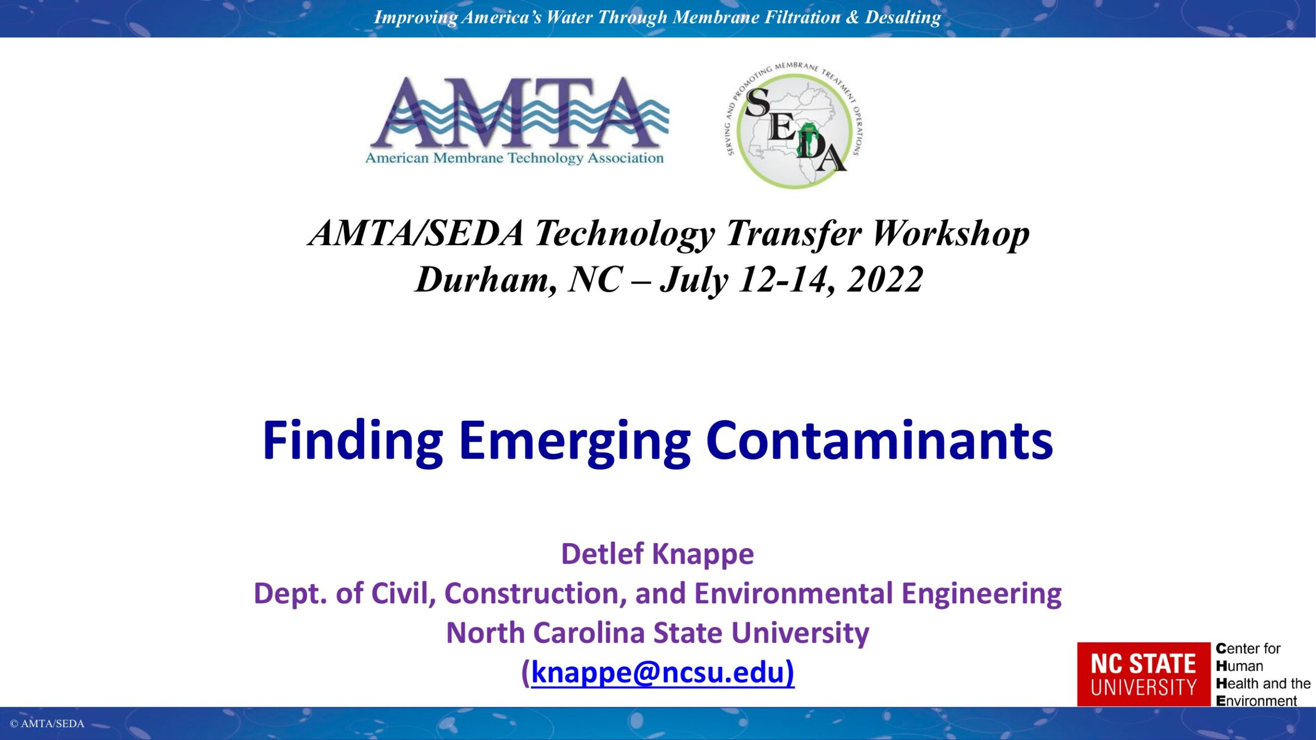 This presentation will describe (1) analytical methods to identify emerging contaminants in drinking water supplies and (2) the application of these methods to drinking water sources in North Carolina. Example contaminants/contaminant classes that will be discussed are per- and polyfluoroalkyl substances, 1,4-dioxane, and pesticides. The impact of the discovery of emerging contaminants on drinking water utilities will also be highlighted.