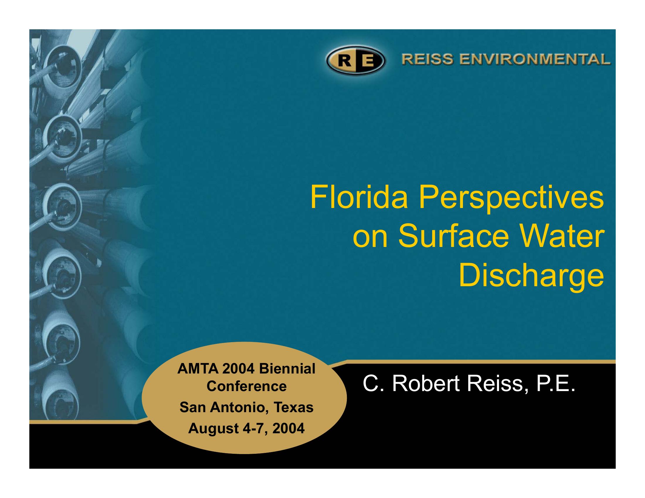 Presentation of the use of surface water discharges as a means of disposing of membrane water treatment concentrate in Florida. Data is presented that verifies that surface water discharges are a leading alternative in Florida. The economic benefits are noted as well as current permitting procedures to establish regulatory acceptance.