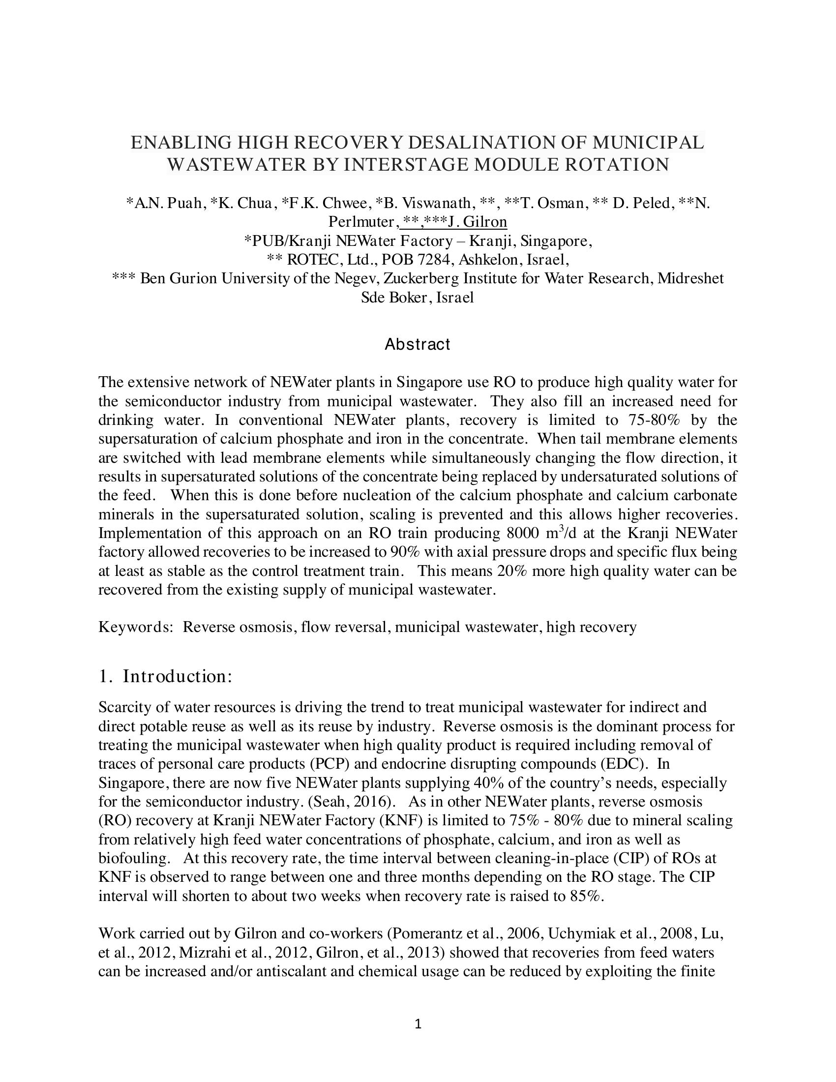 | Keywords | Reverse Osmosis, Flow Reversal, Municipal Wastewater, High Recovery |