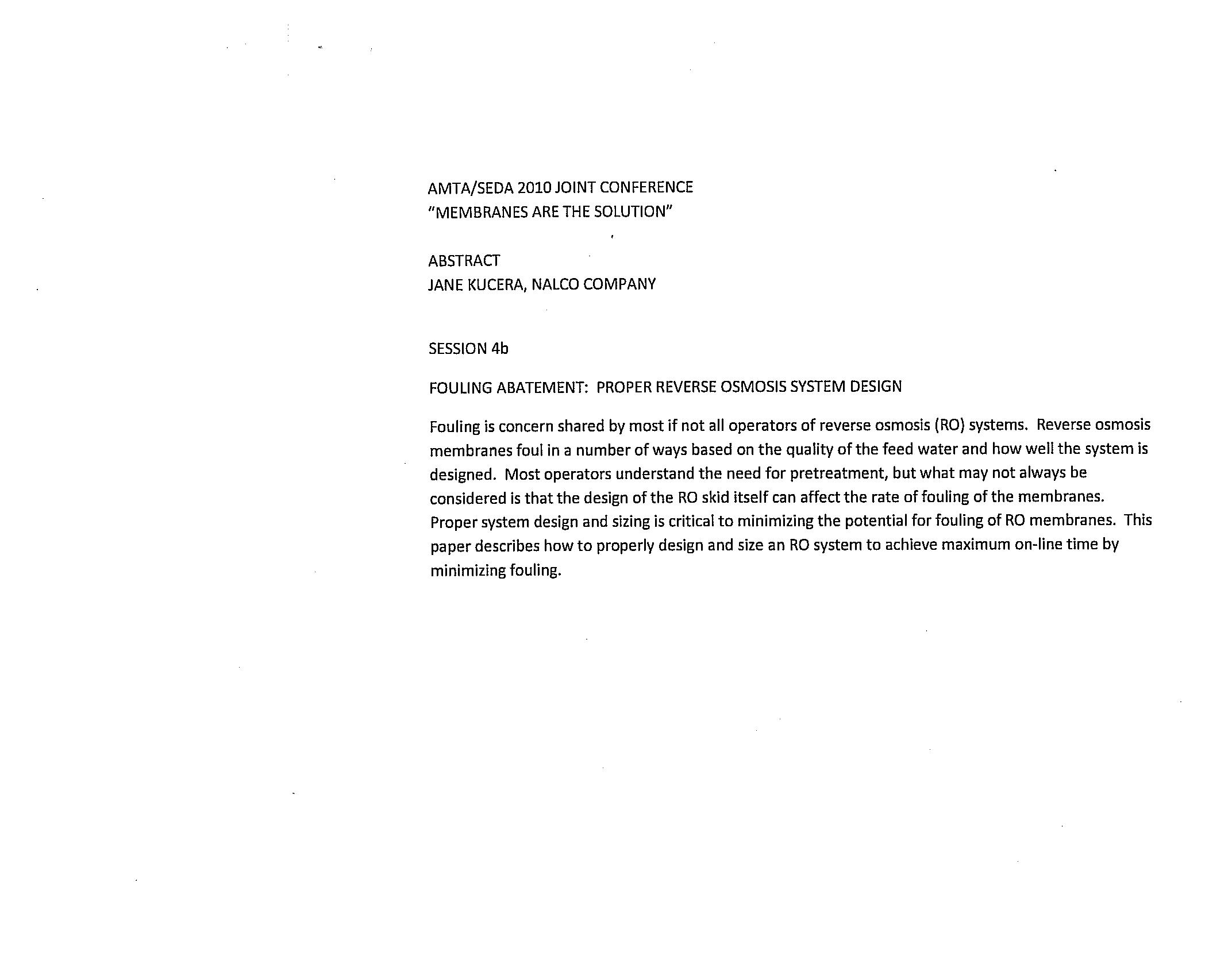 | Keywords | system design, membrane fouling |