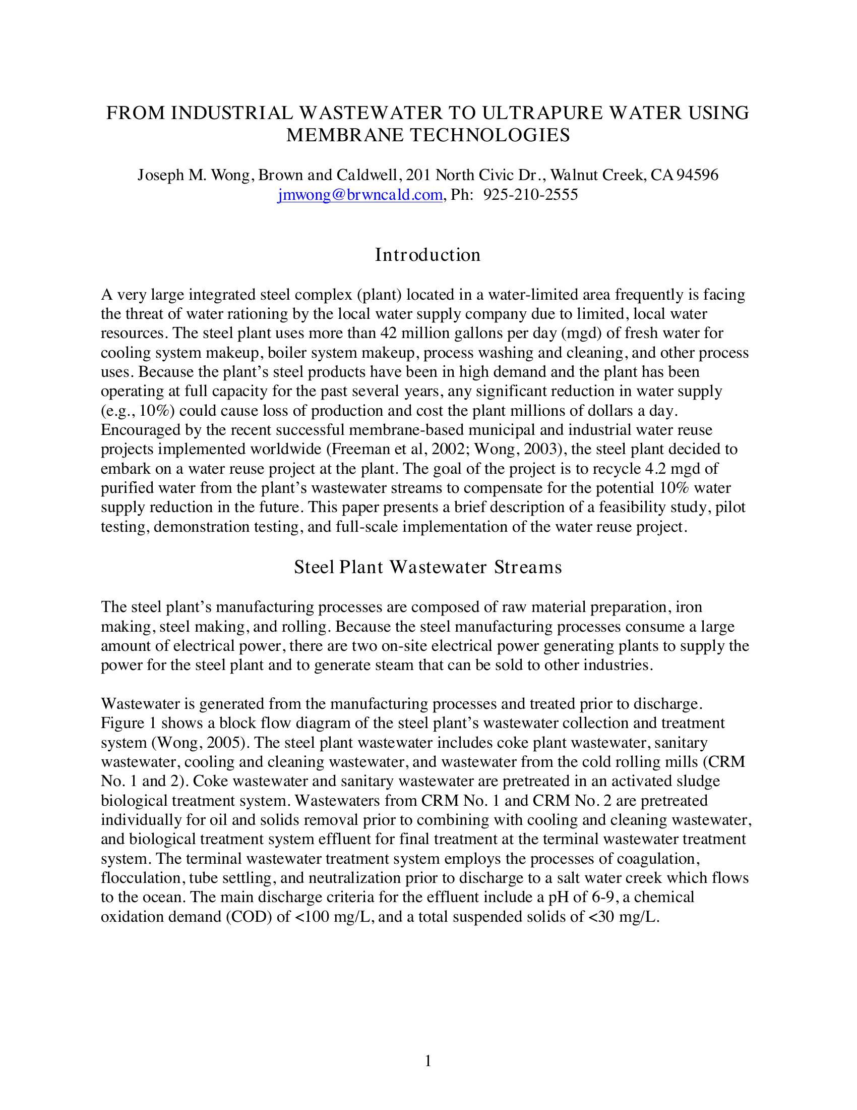 | Keywords | Ultrapure, Industrial wastewater, industrial reuse |