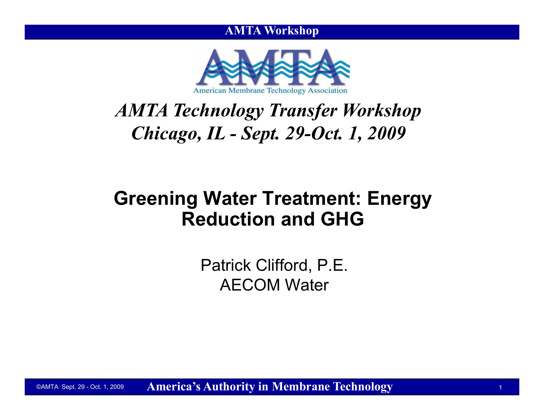 Greening Water Treatment: Energy Reduction and Green House Gas