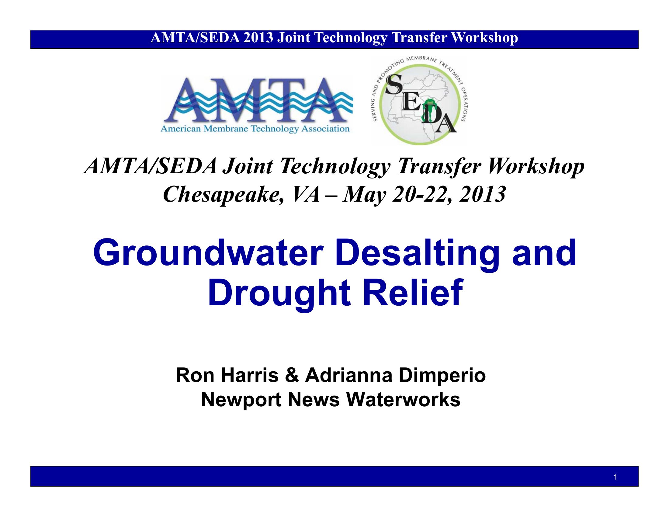 Groundwater Desalting and Drought-Relief