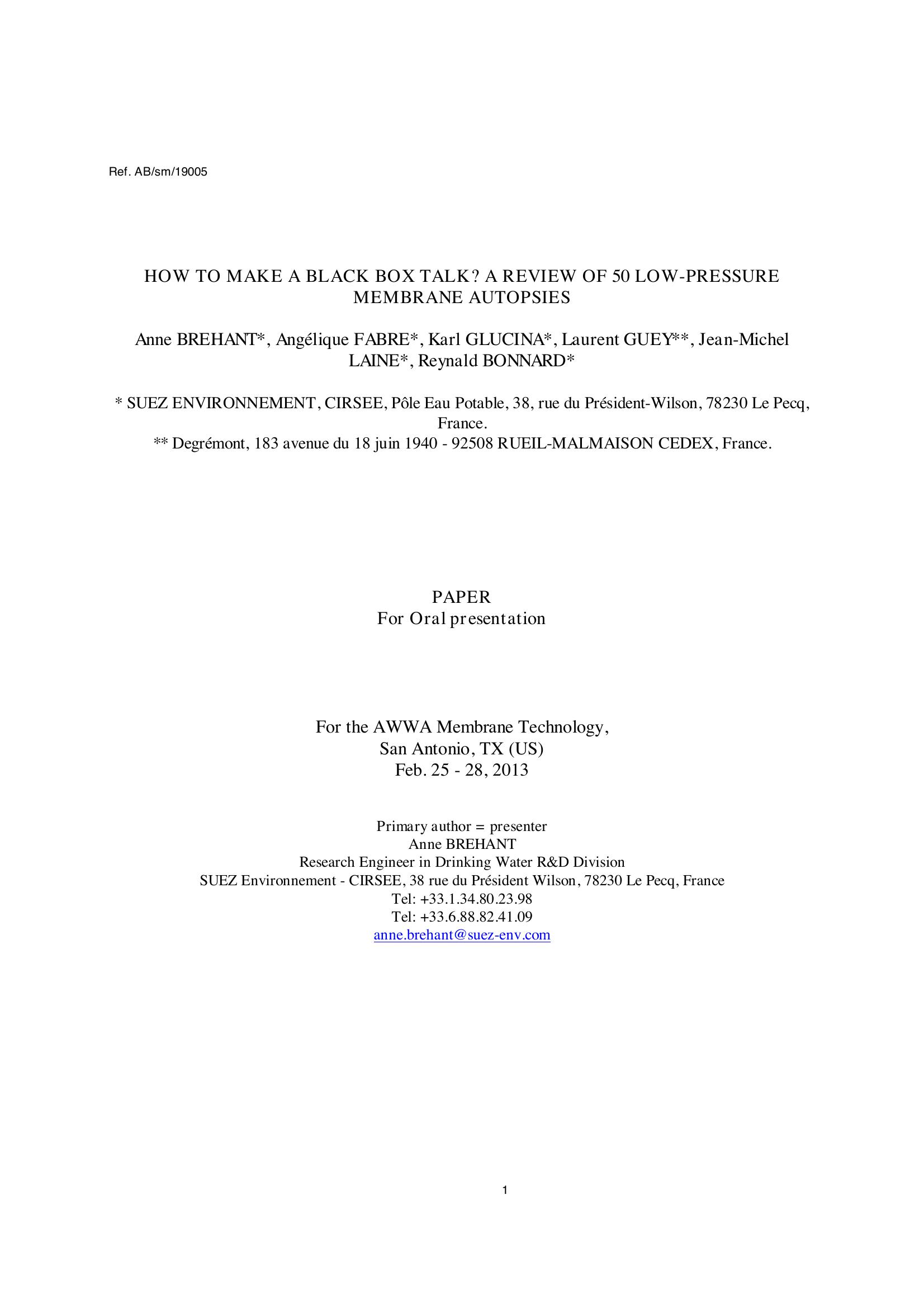 This paper looks at the results of autopsying 50 MF/UF modules received from facilities around the world treating water for different applications.The gathered data show that most of the time, the autopsy succeeds in drawing up a cause and effect scenario explaining the observations recorded on sites. The reasons for production loss and integrity failures are enumerated and illustrated. The resulting database allowed benchmarking the ageing of the different polymeric membranes and defining a defect mode and effect analysis in term of membrane ageing.